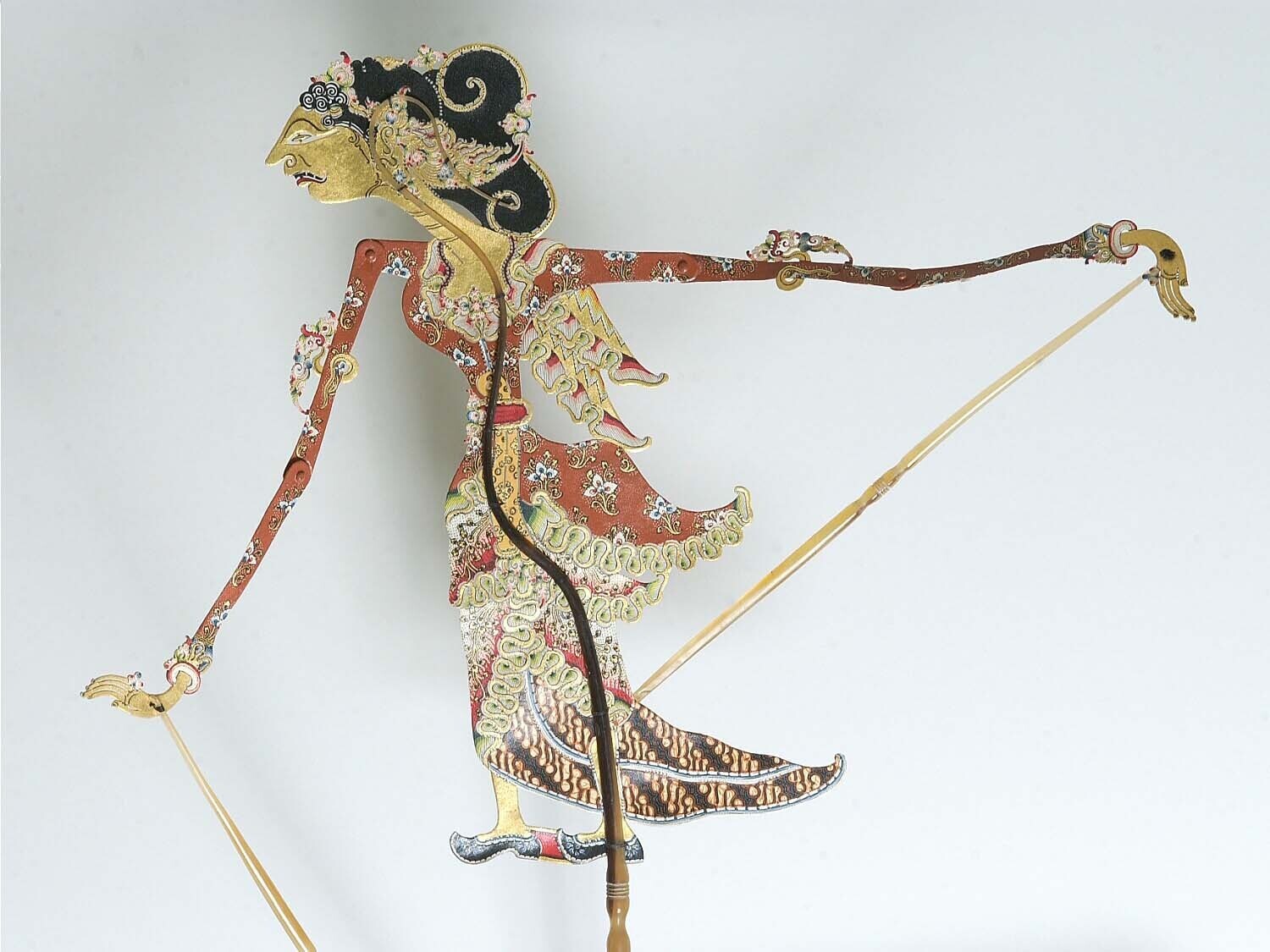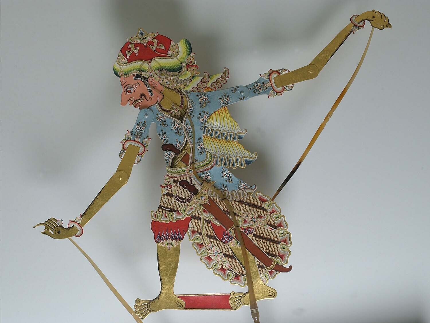 Ronde houten wayangpop (golek) voorstellend een oude...