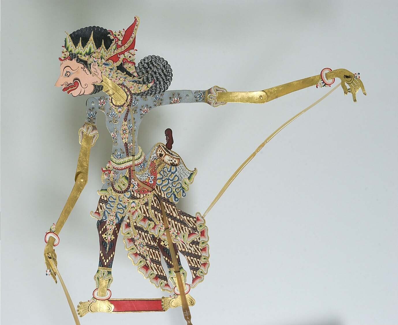 Ronde houten wayangpop (golek) een edel mannelijk pe...