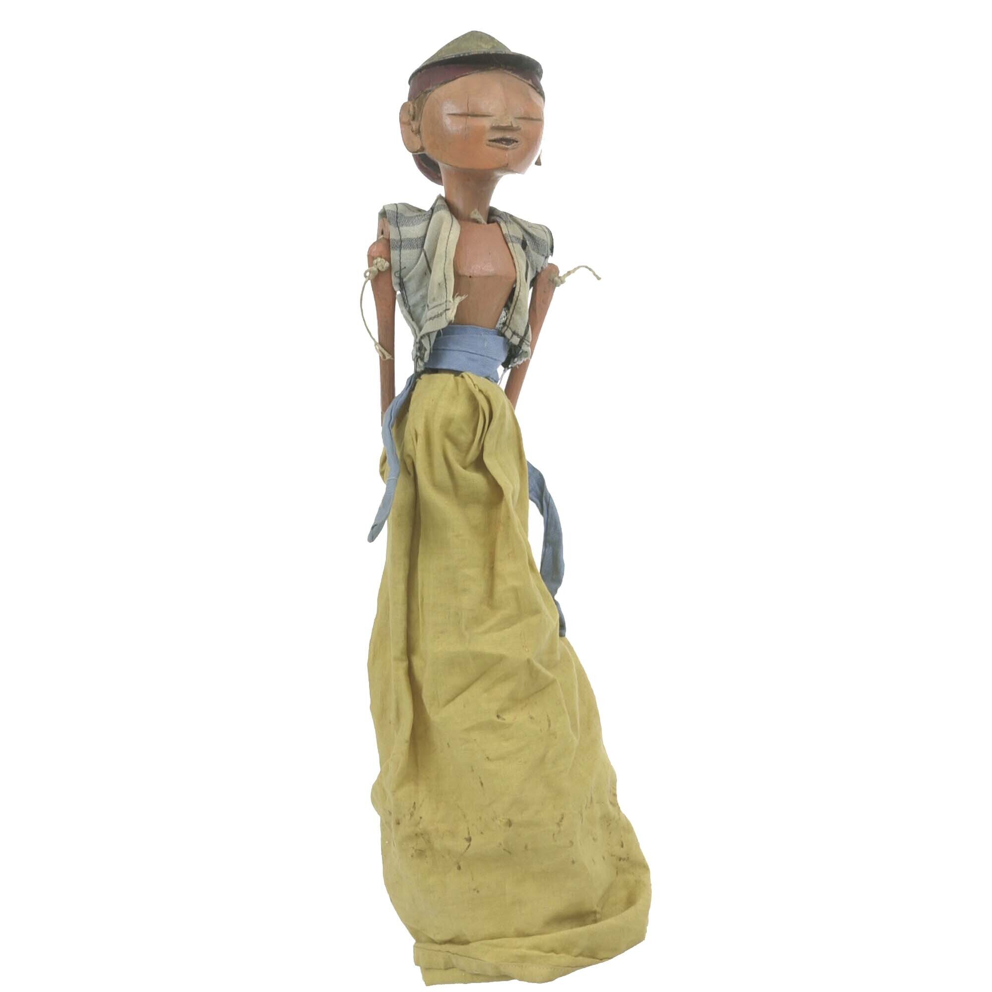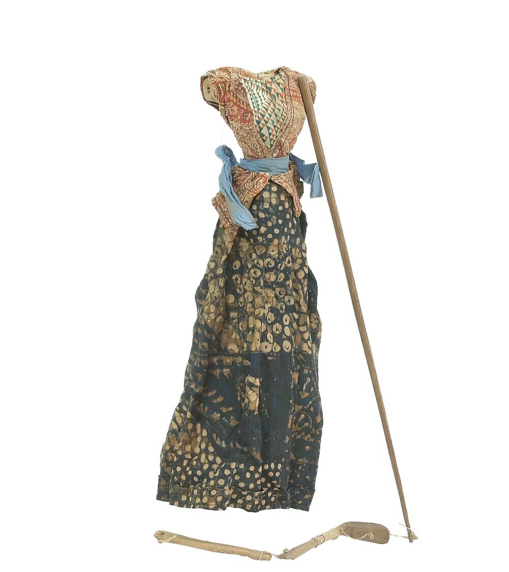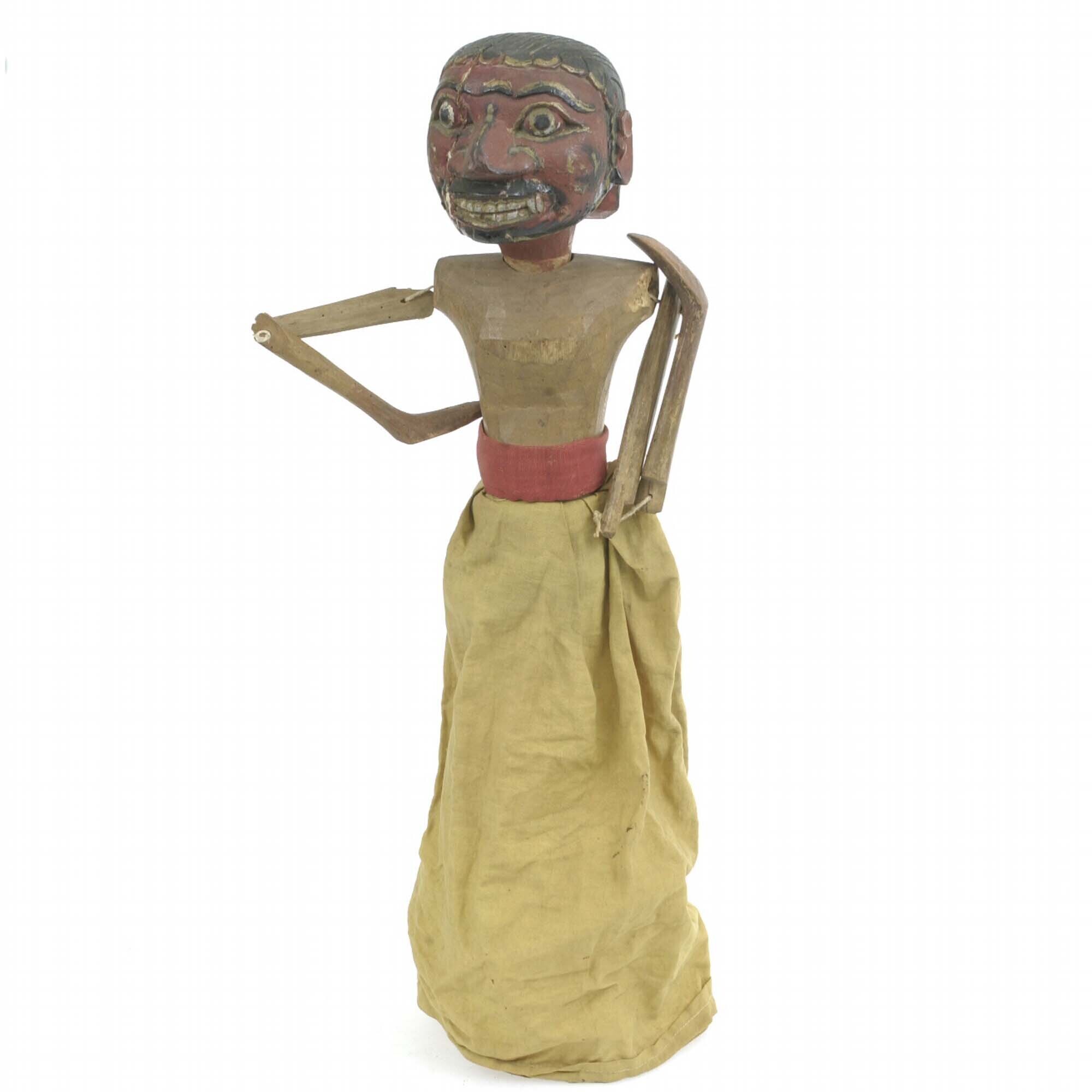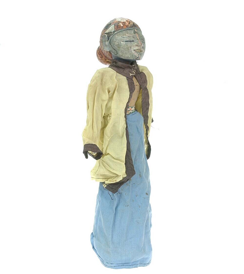 Incomplete ronde houten wayangpop (golek) voorstelle...