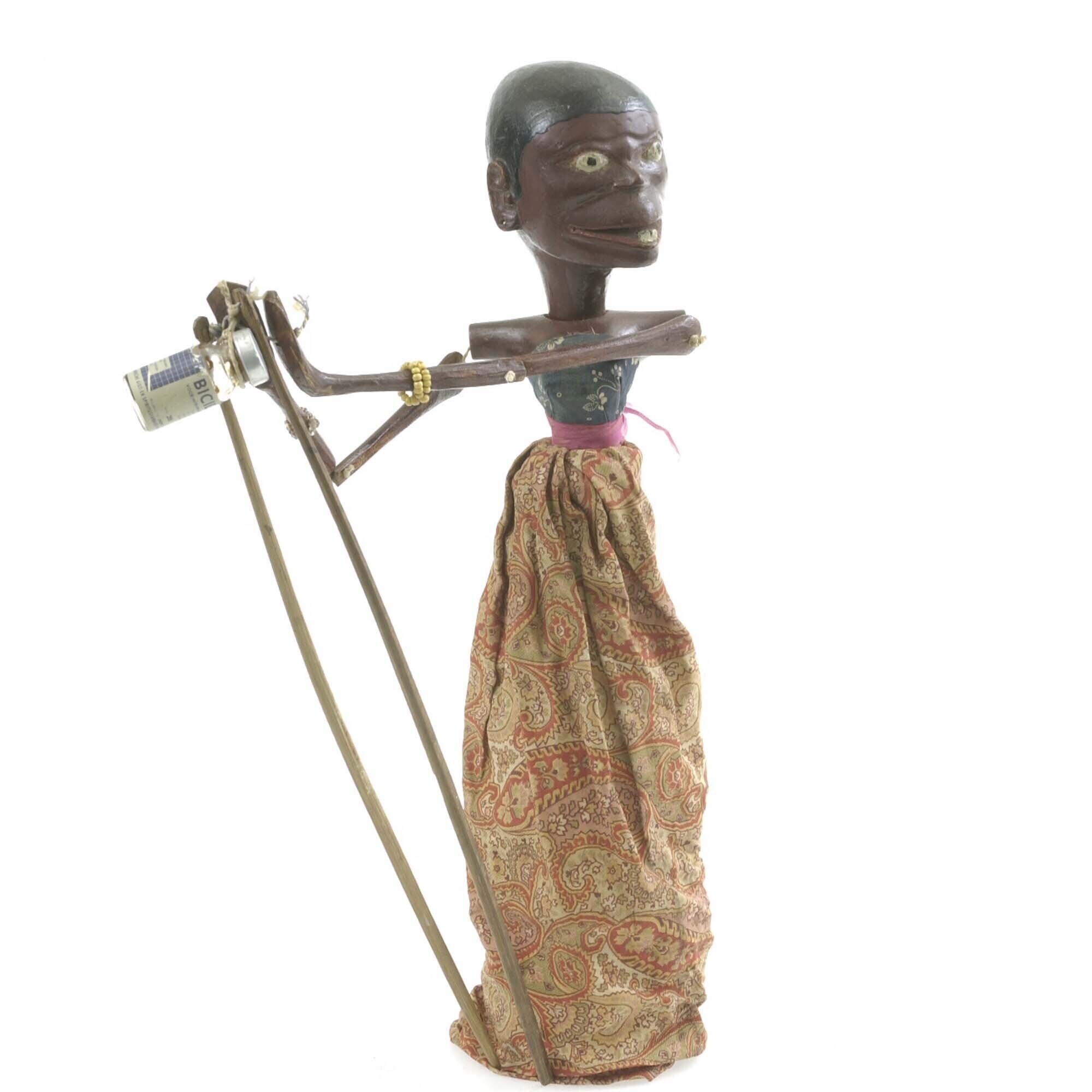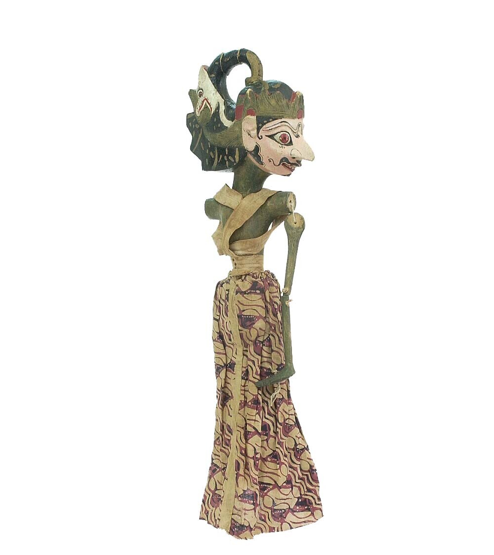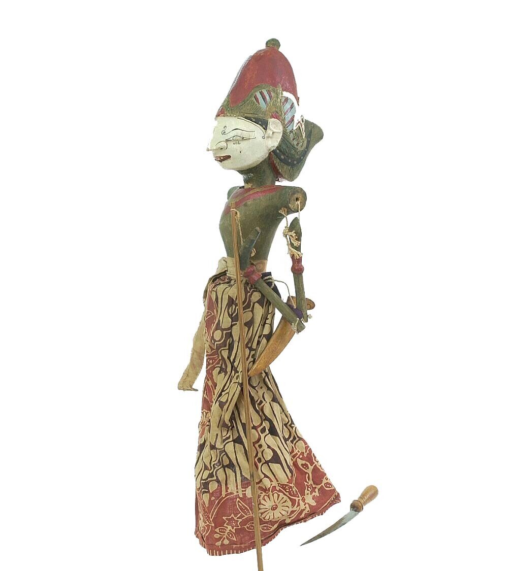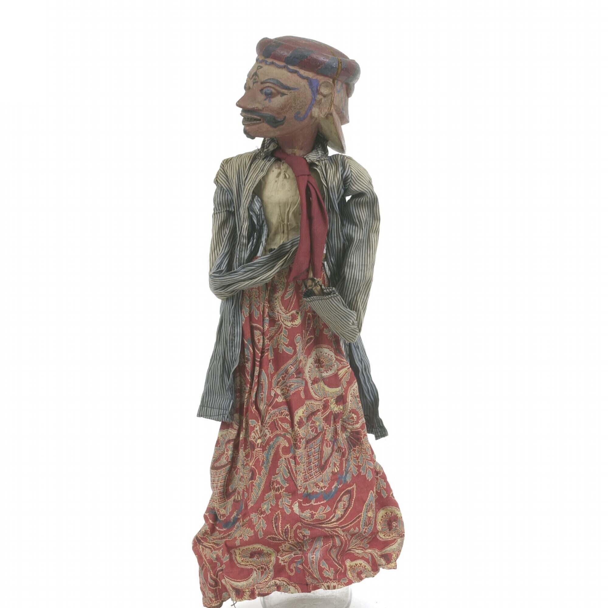 Incomplete ronde houten wayangpop (golek) voorstelle...