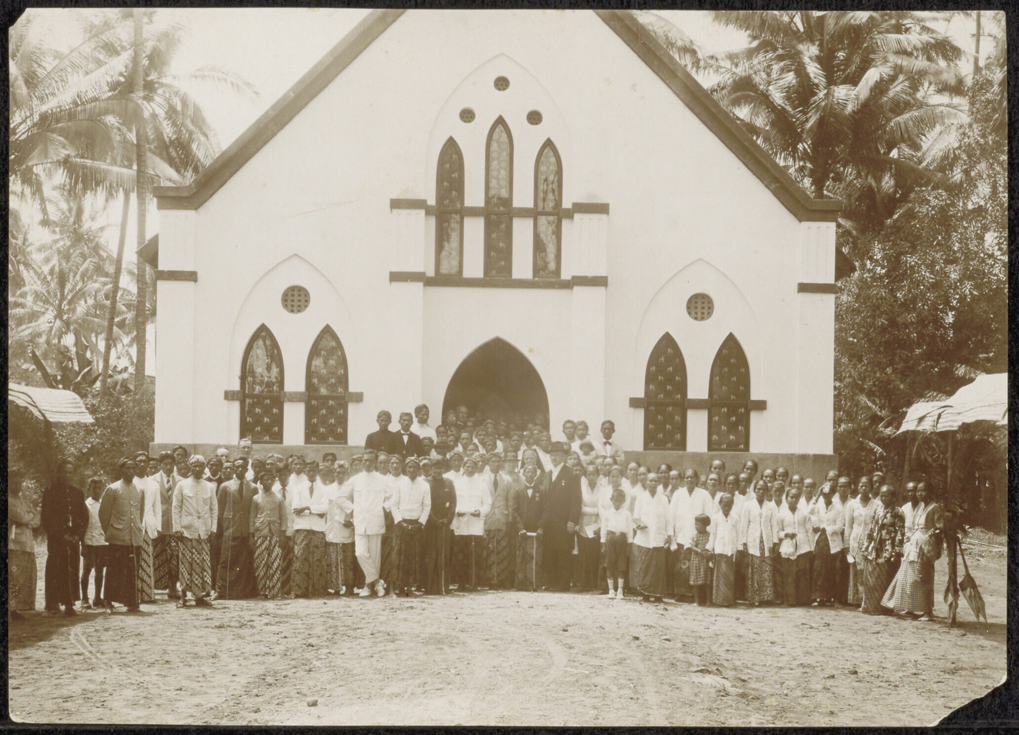 Groepsportret voor een kerk