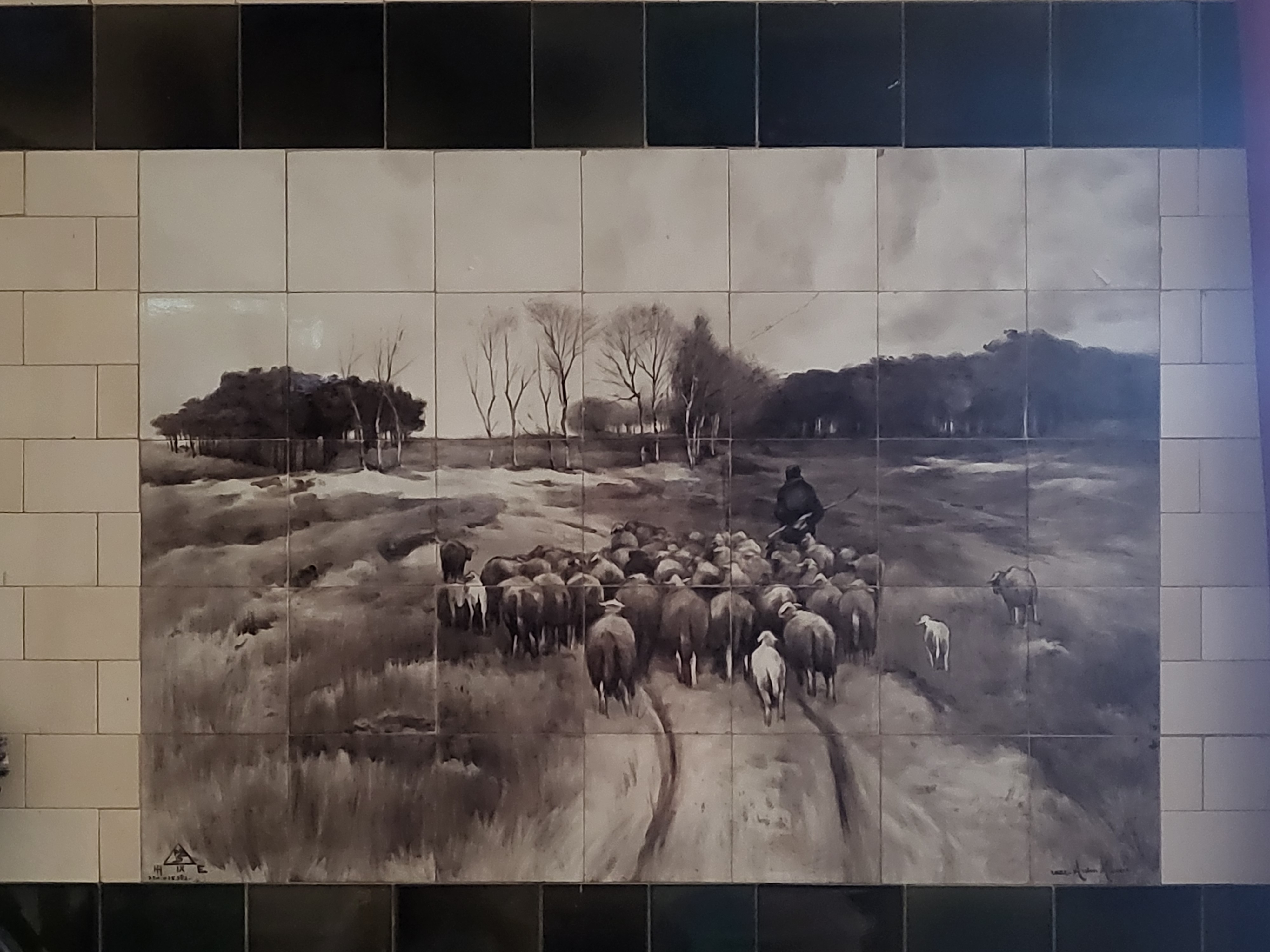 Tegeltableau met afbeelding van een schaaphoeder met...
