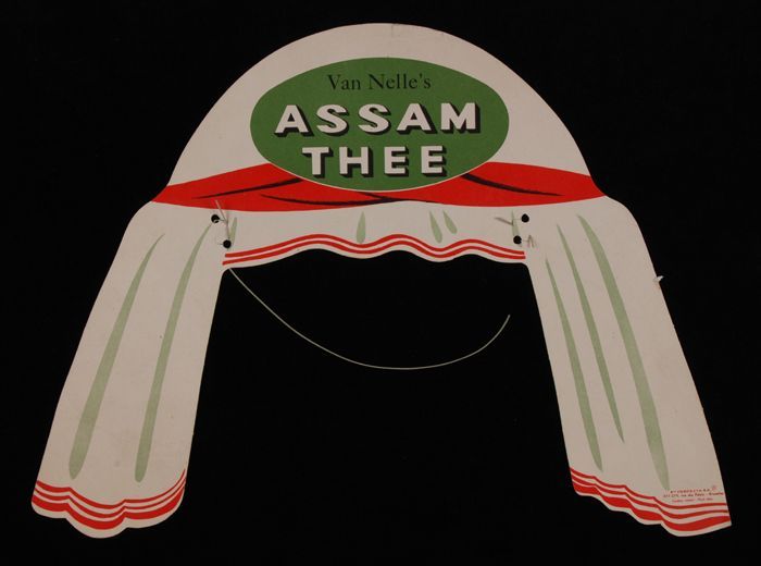 Kartonnen tulband of hoofddoek met "ASSAM THEE" van ...