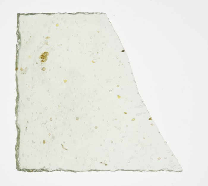 Fragment van kleine ruit, groenig getint vensterglas