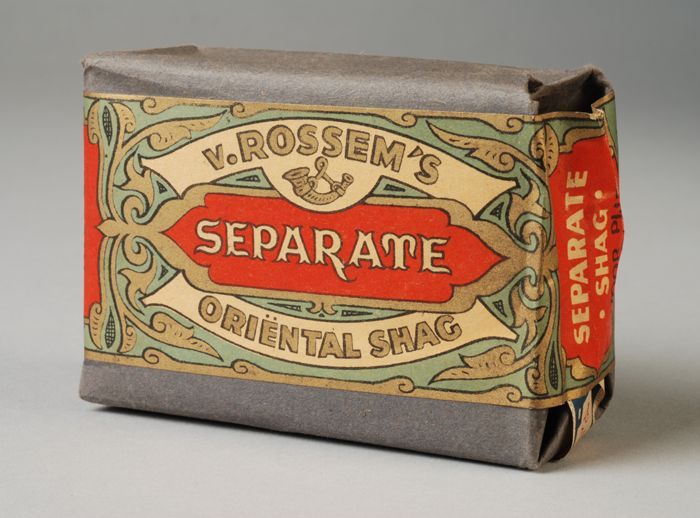 Blauw met rood pakje tabak van Van Rossem, productna...