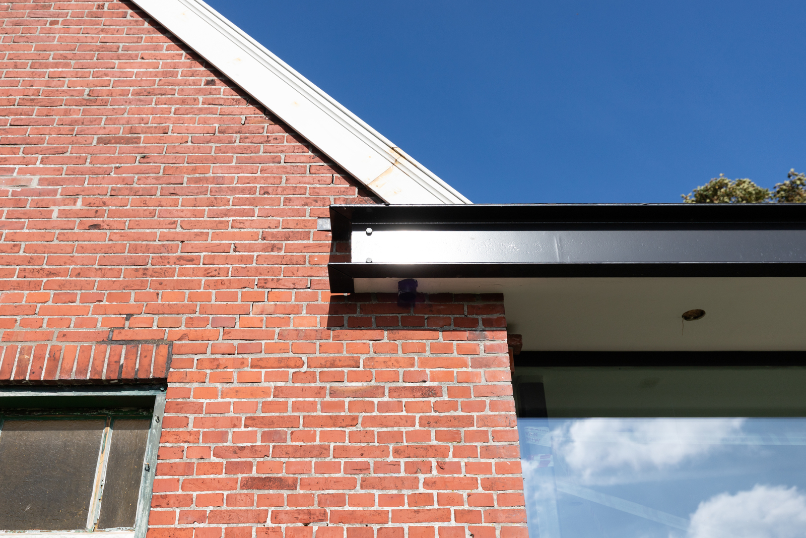 Aansluiting oude bijbouw en nieuwbouw achter kerk