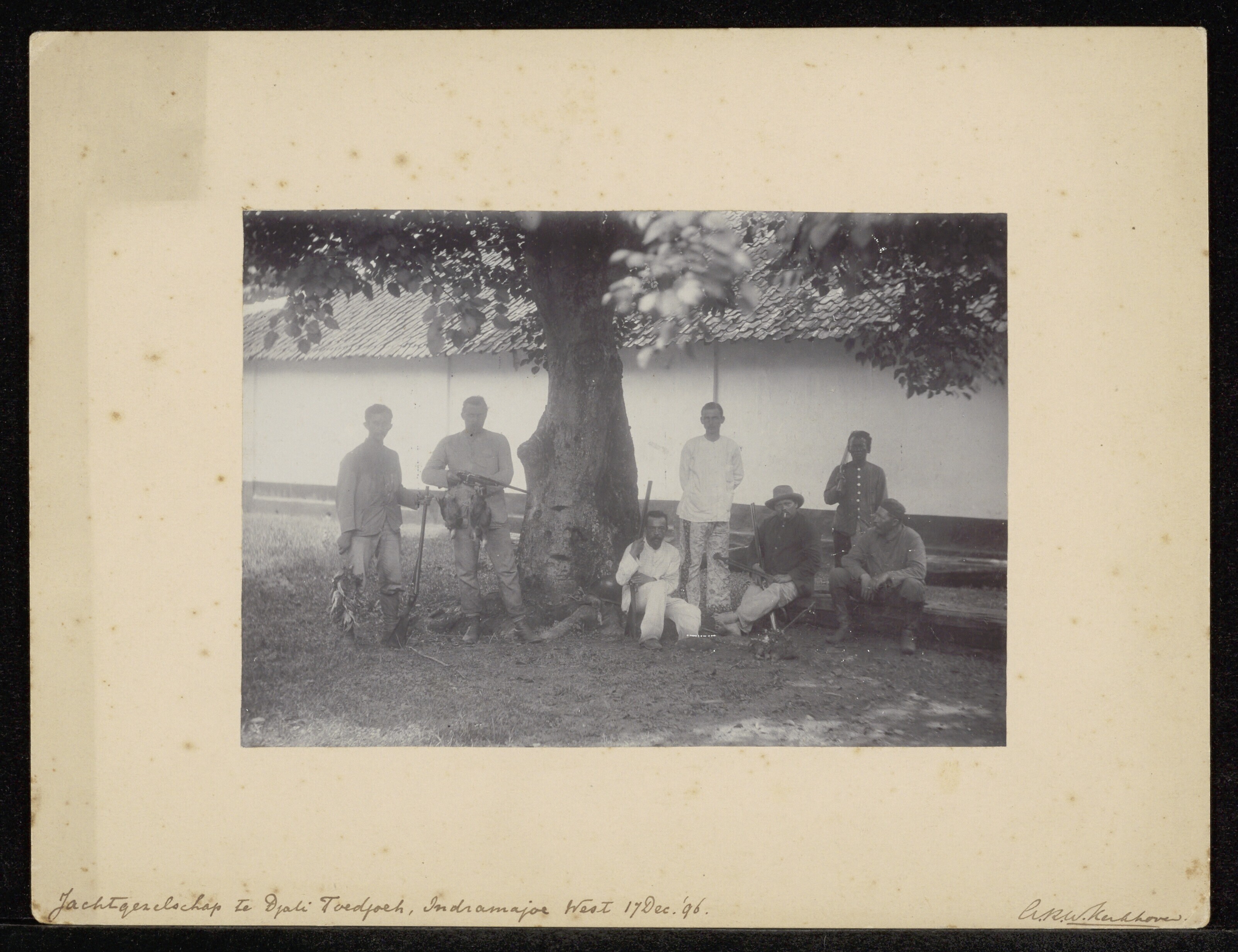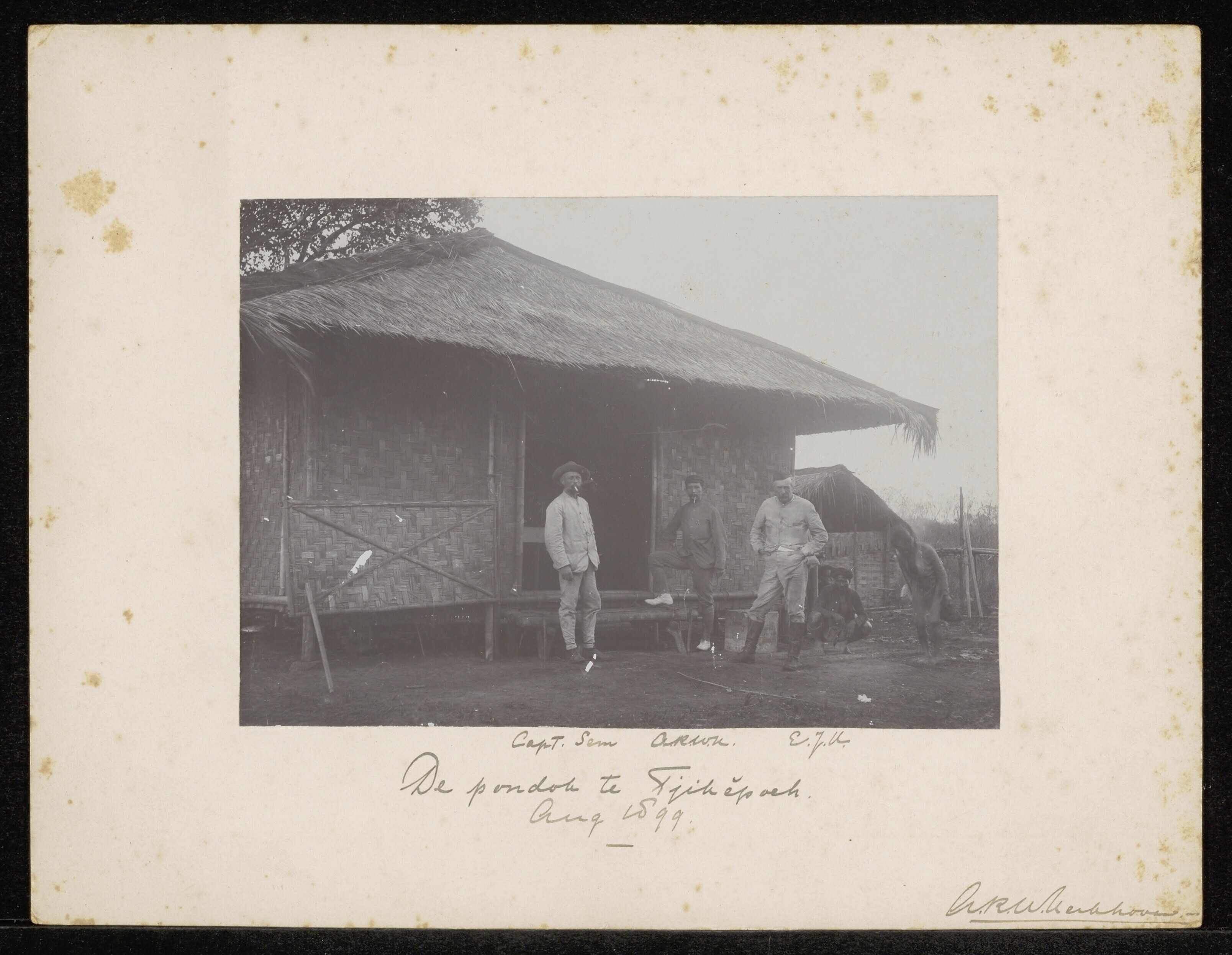 Hunters in front of a pondok, Cikepuh