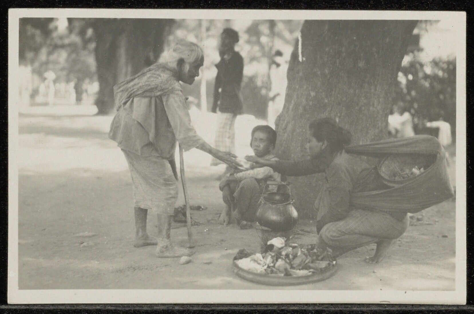 Straatverkoopster met vrouw op leeftijd