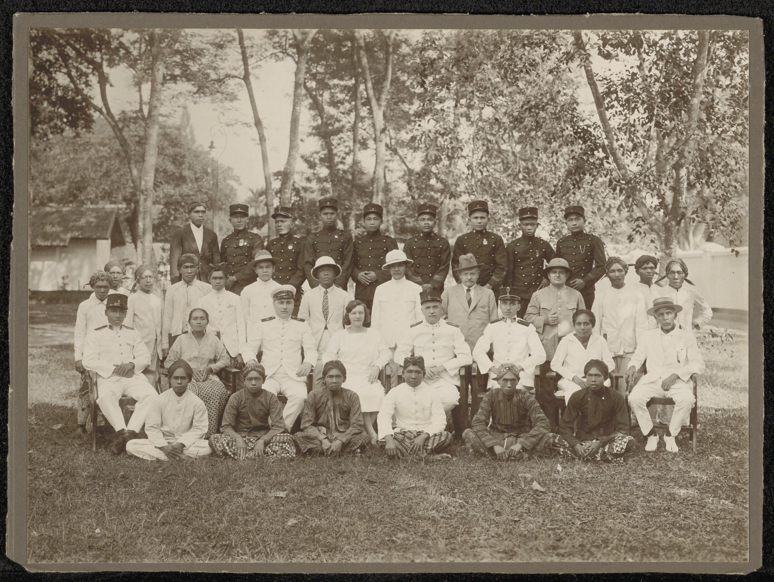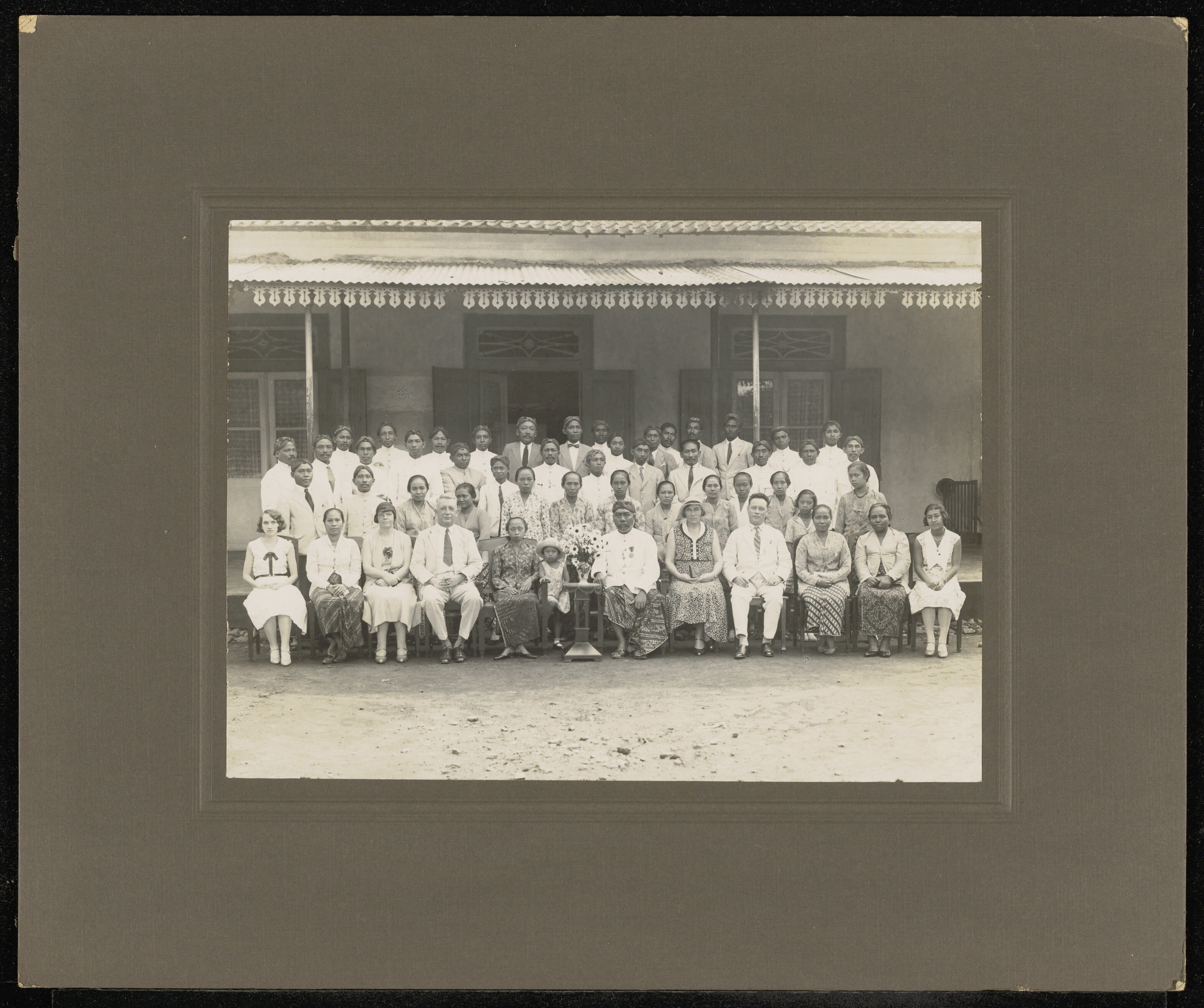 Portret van een gezelschap voor de School voor Inlan...