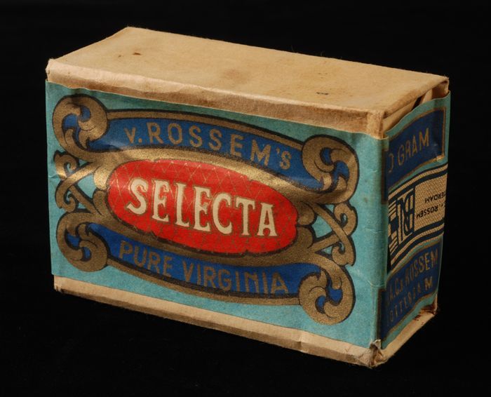 Blauw met zwart en goud pakje tabak, Van Rossem, pro...