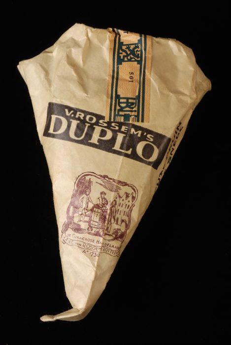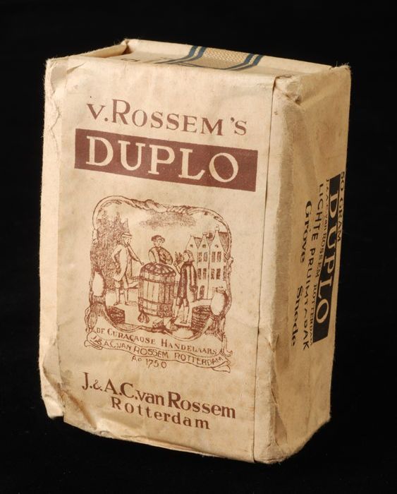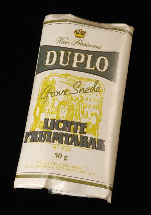 Beige pakje tabak van Van Rossem, productnaam Duplo,...