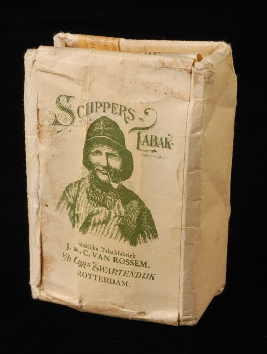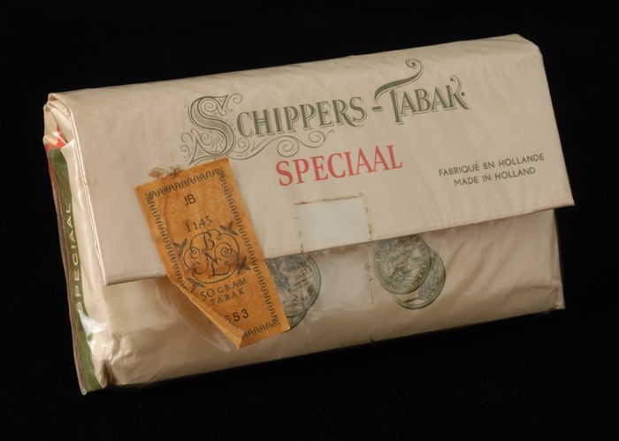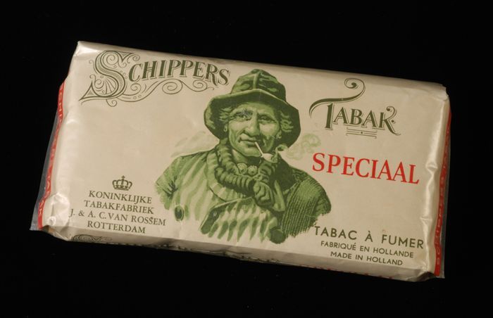 Wit pakje tabak van Van Rossem, productnaam Schipper...