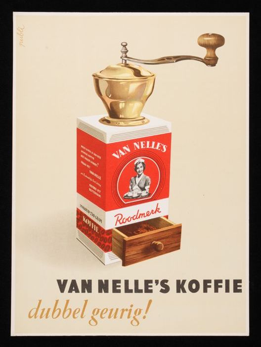 Twee uitklapbare reclameborden Van Nelle's "goudmerk...