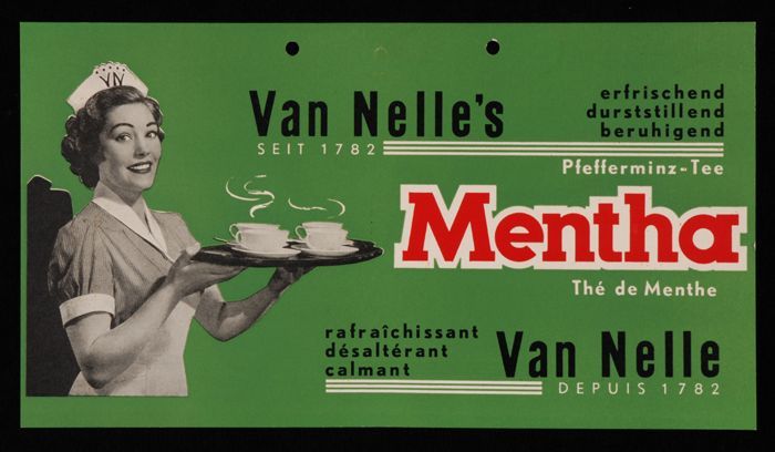 Reclamebord Van Nelle's "Mentha" thee met Nellie