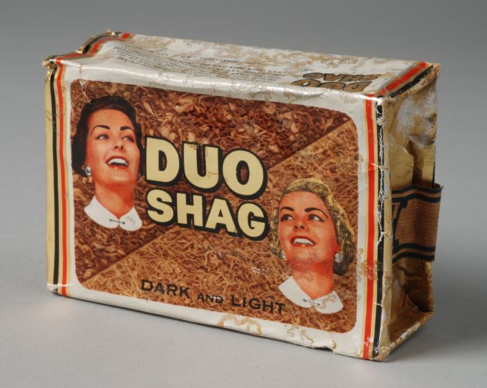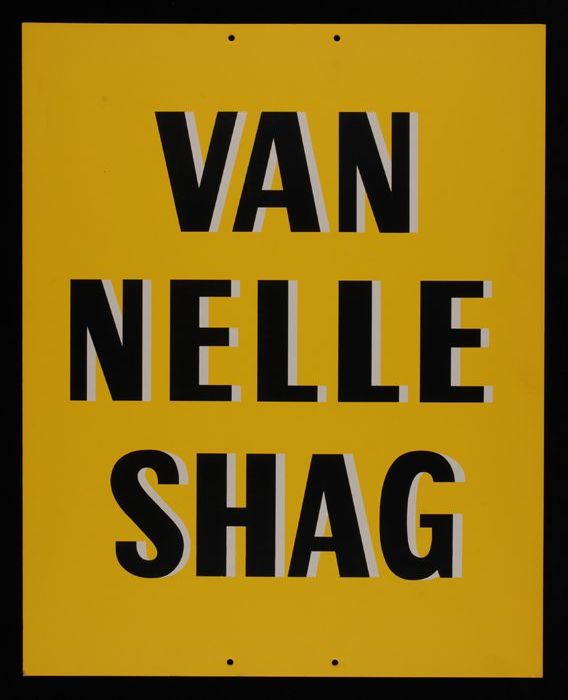 Twee reclameborden waarop "VAN NELLE SHAG"