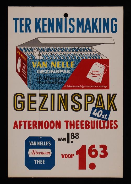 Kartonnen reclamebord met "thé VAN NELLE thee"