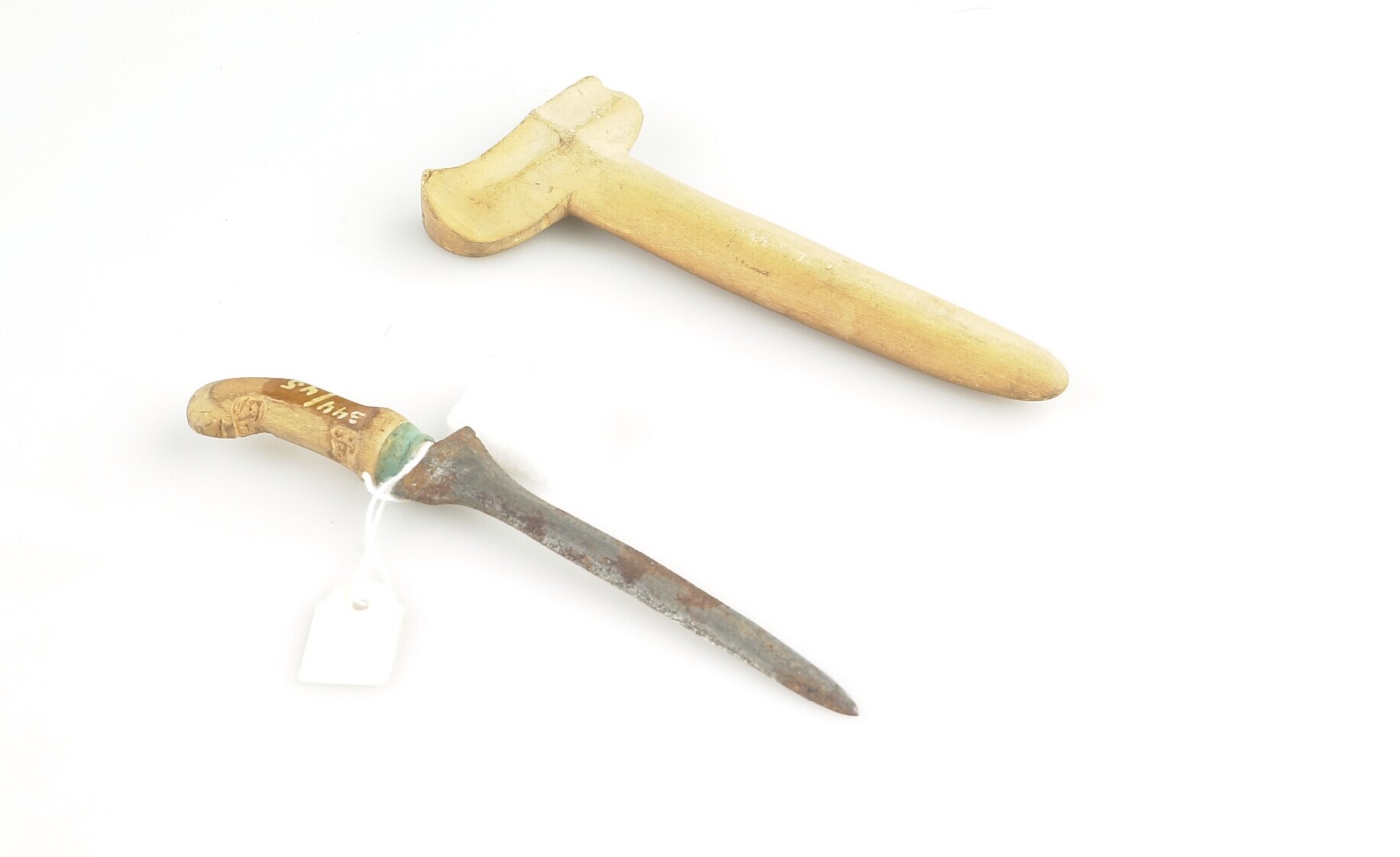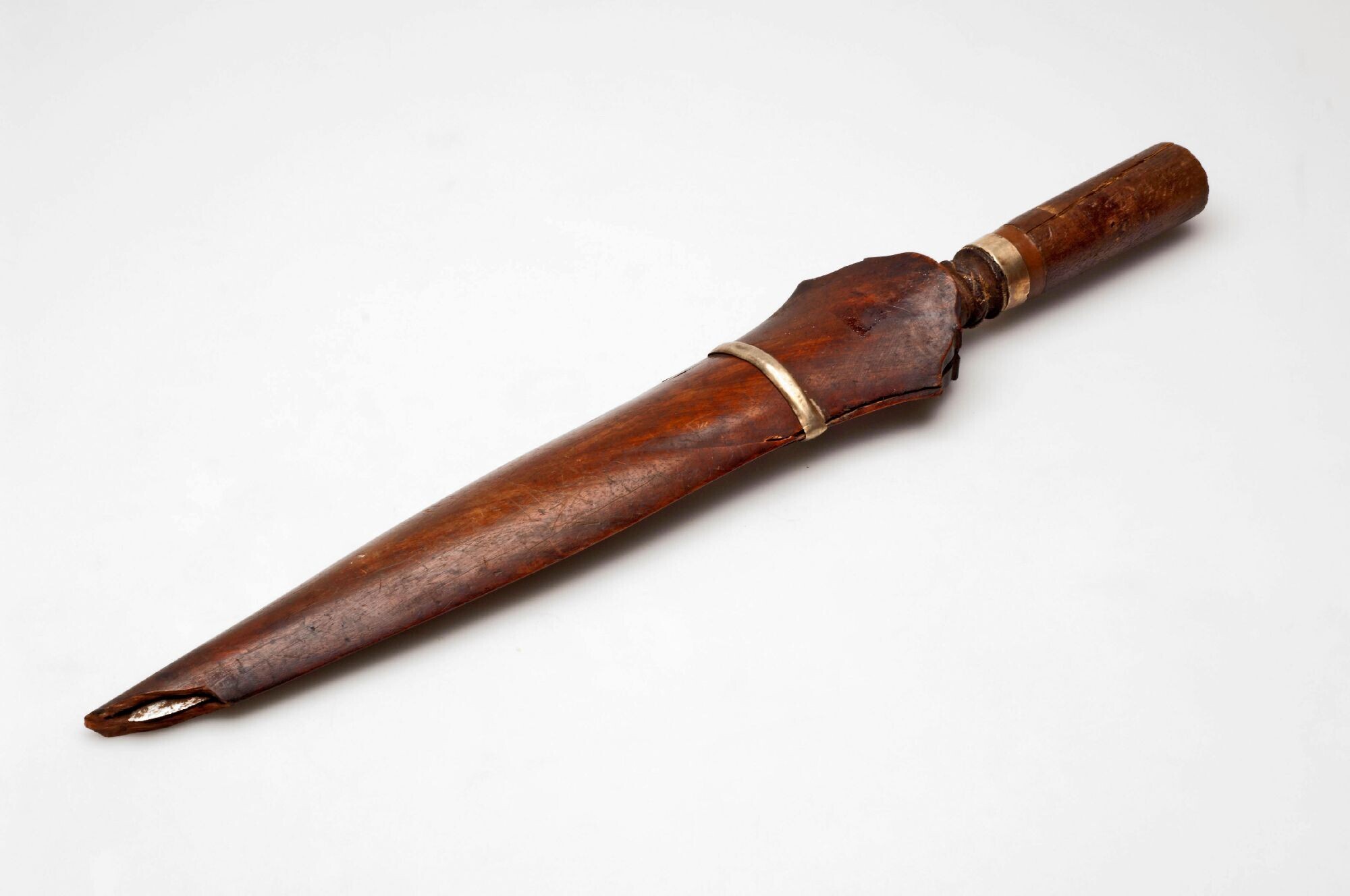 Dolkmes met houten greep en bijbehorende houten schede