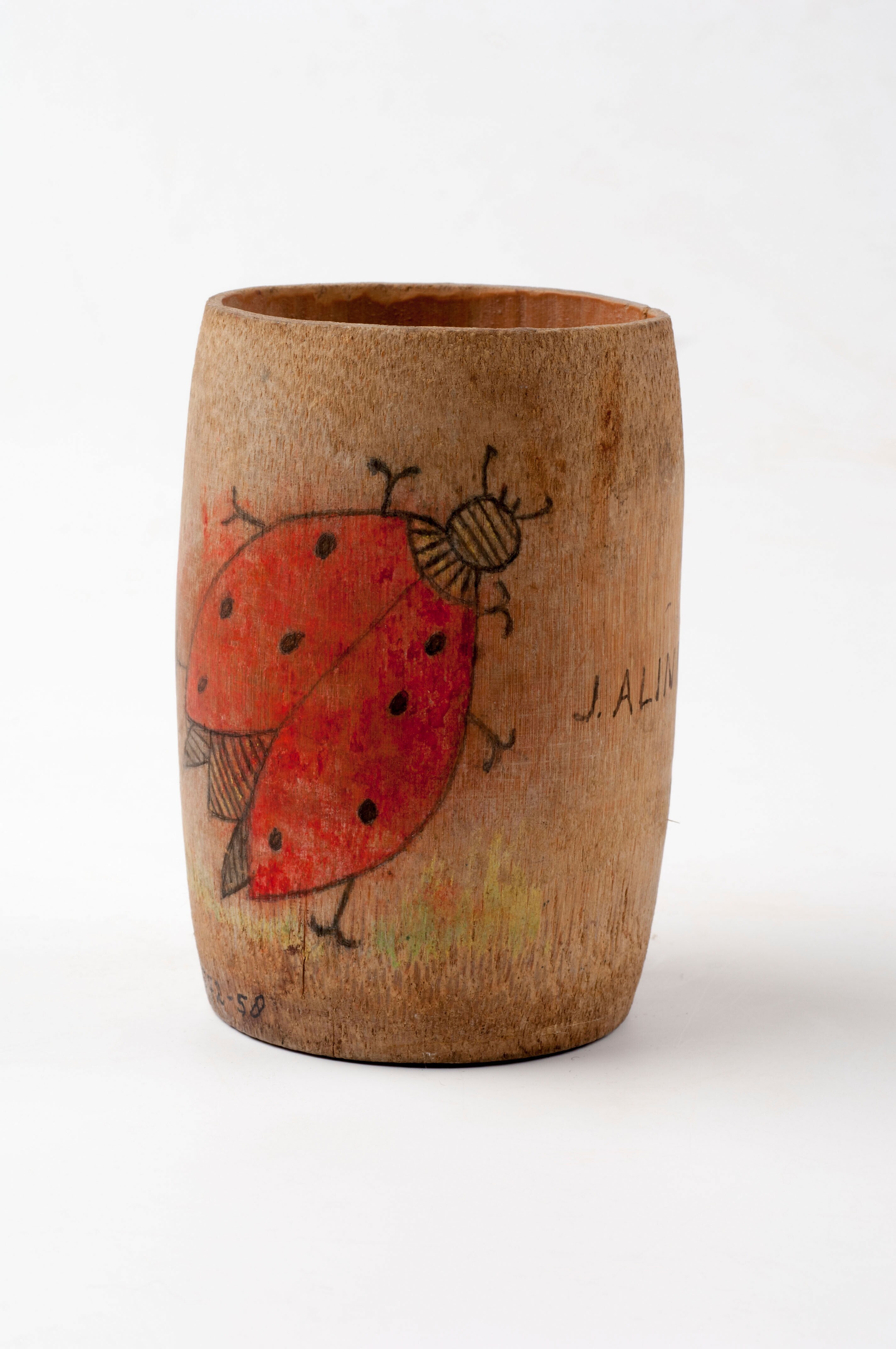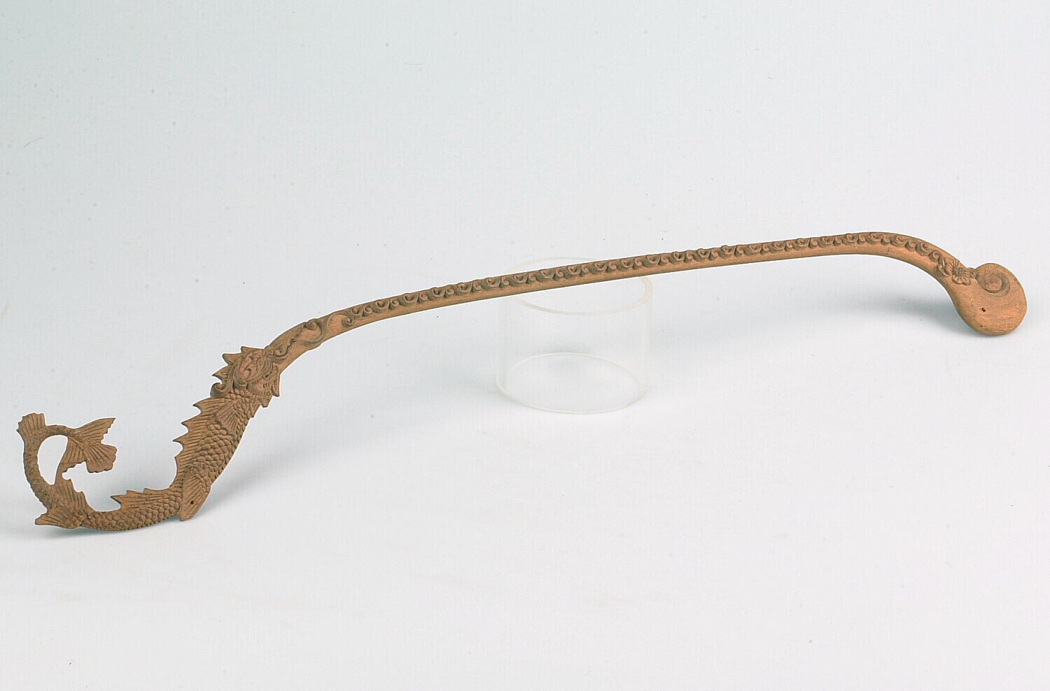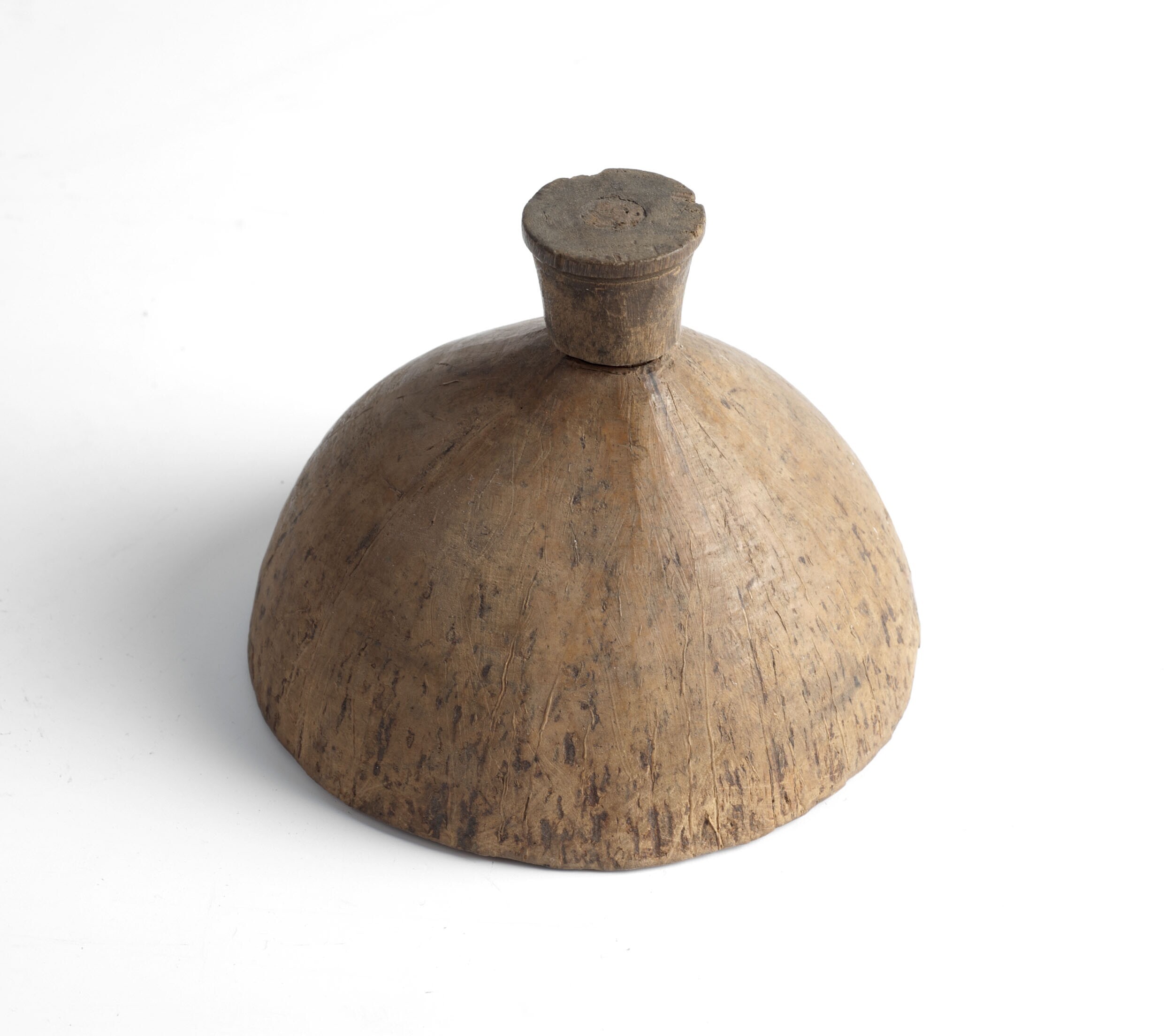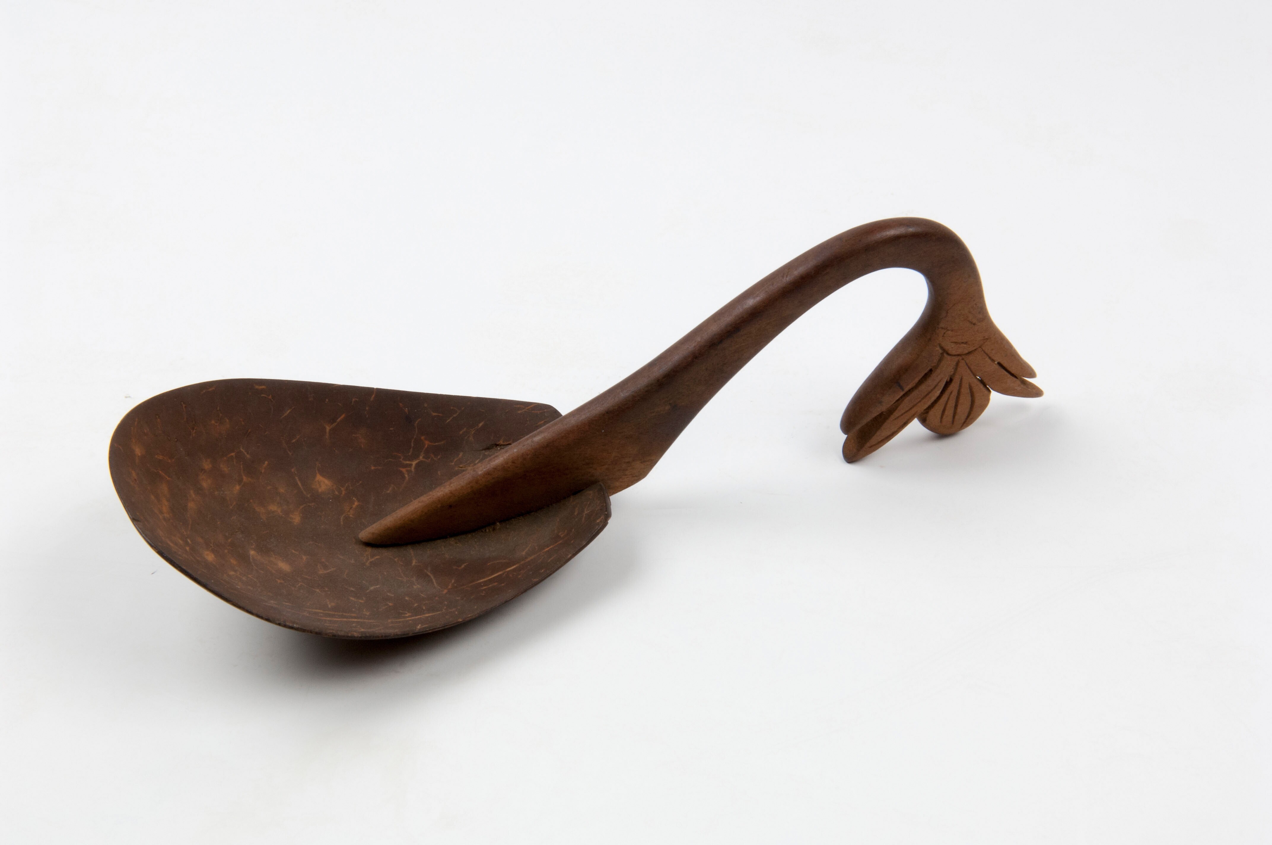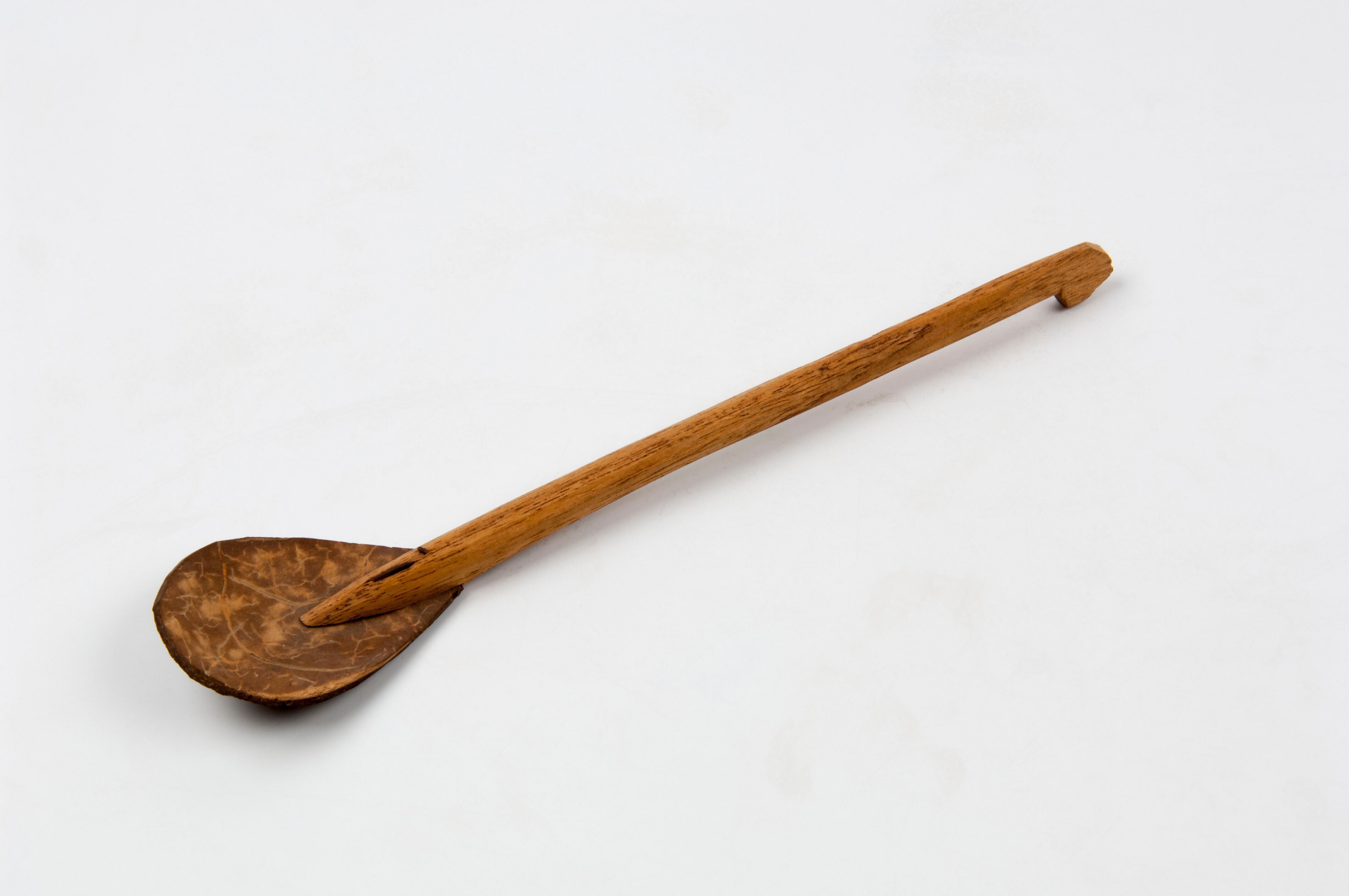 Halve kokosnoot met houten handvat, onderdeel van ee...