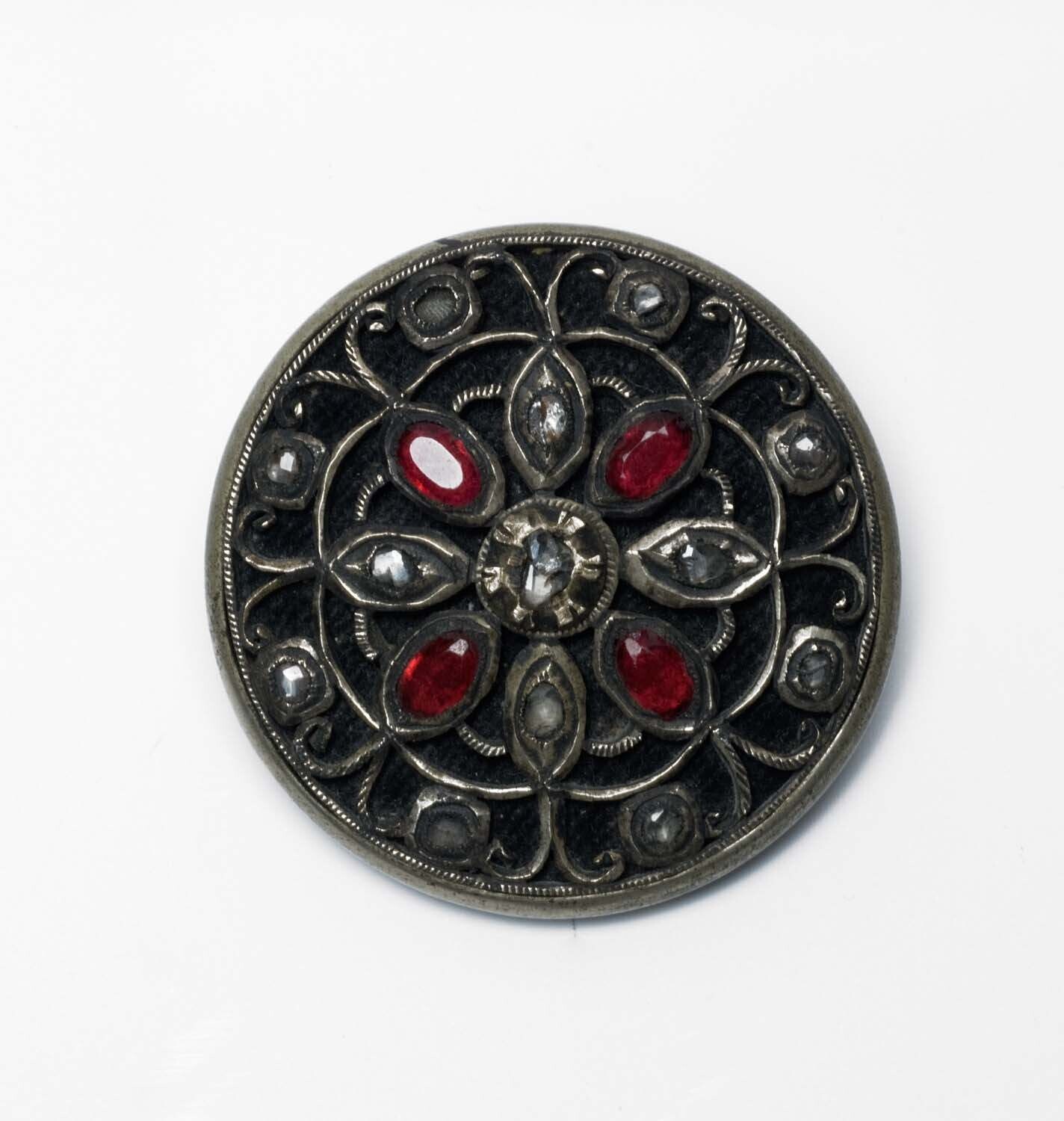Ronde zilveren broche met robijnen