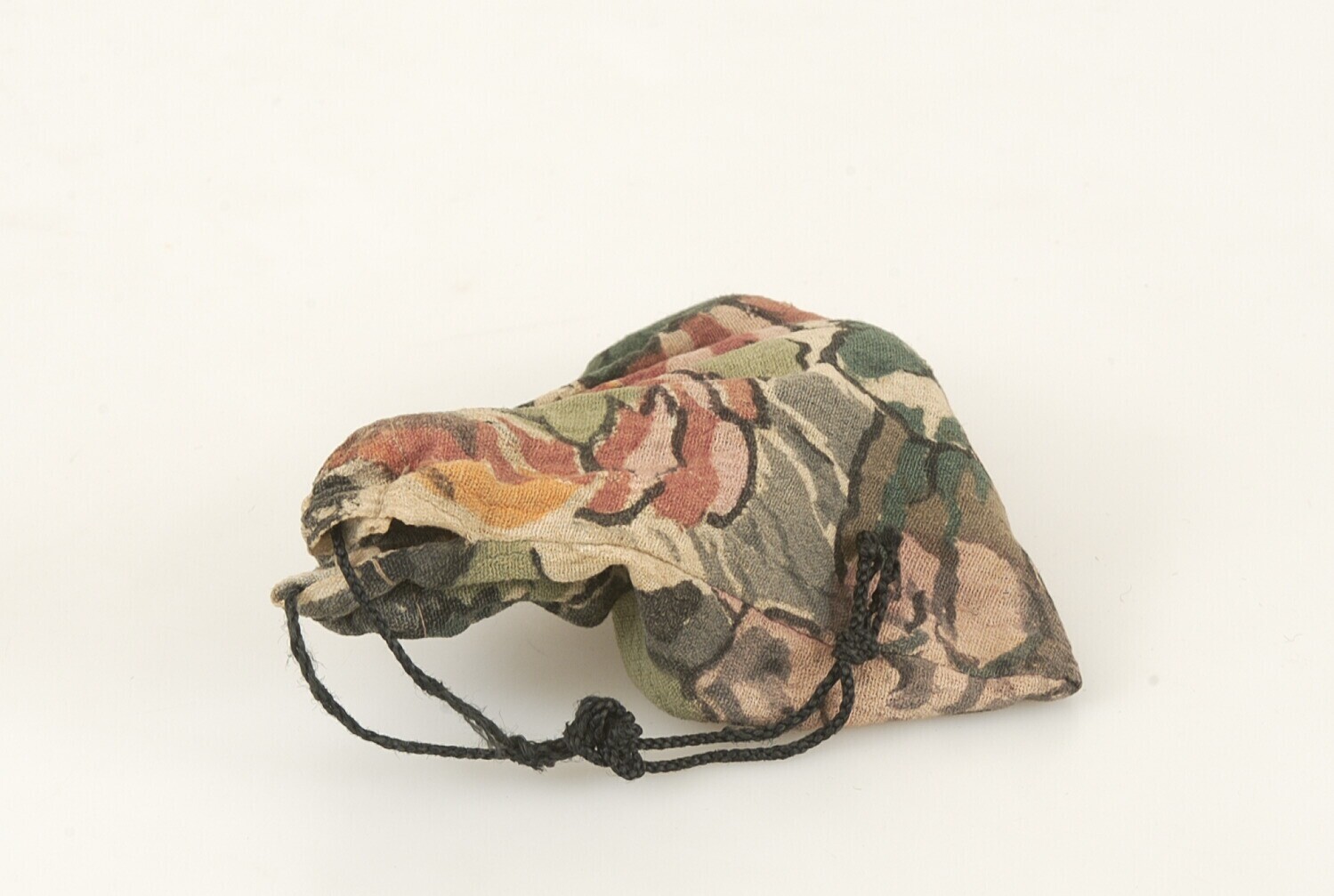 Zakje van bedrukt katoen, onderdeel van bikkelspel