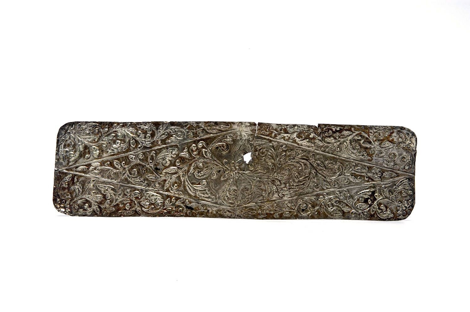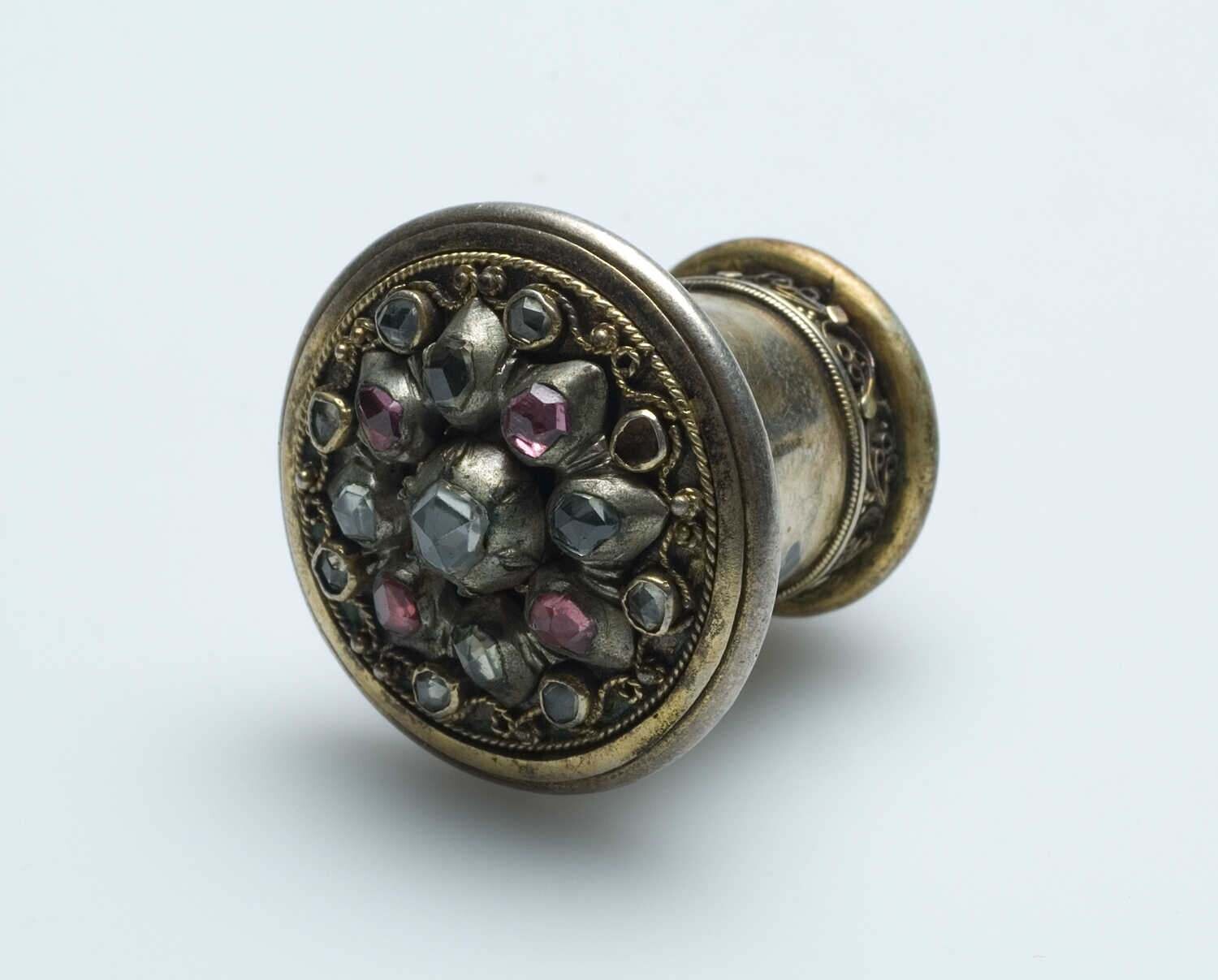 Oorplug, van koper en zilver met sierstenen