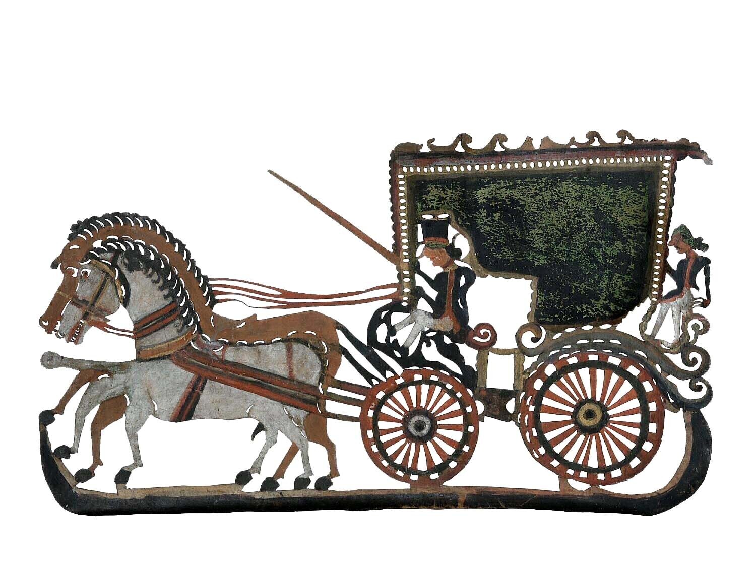 Wajangfiguur, voorstellende een wagen met twee paarden