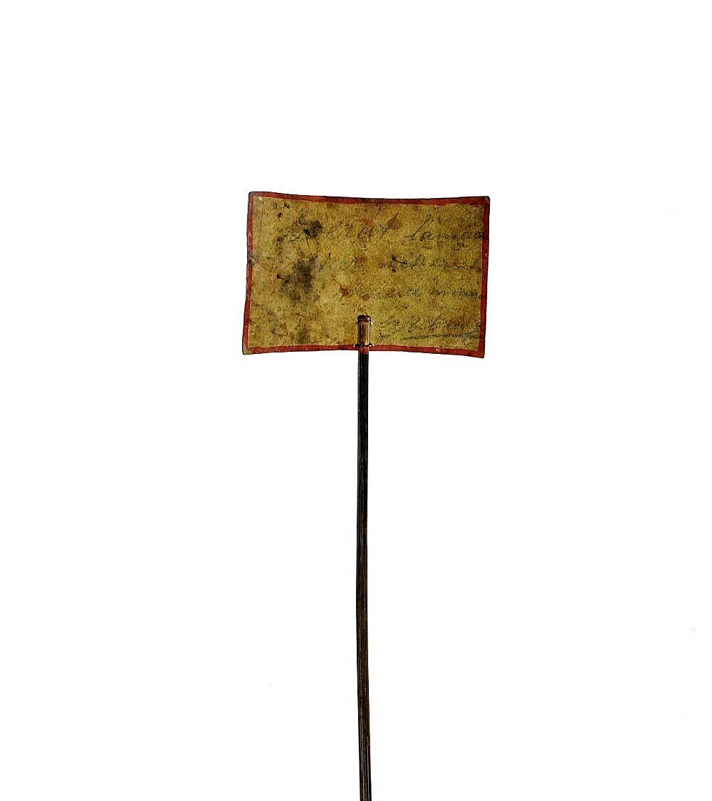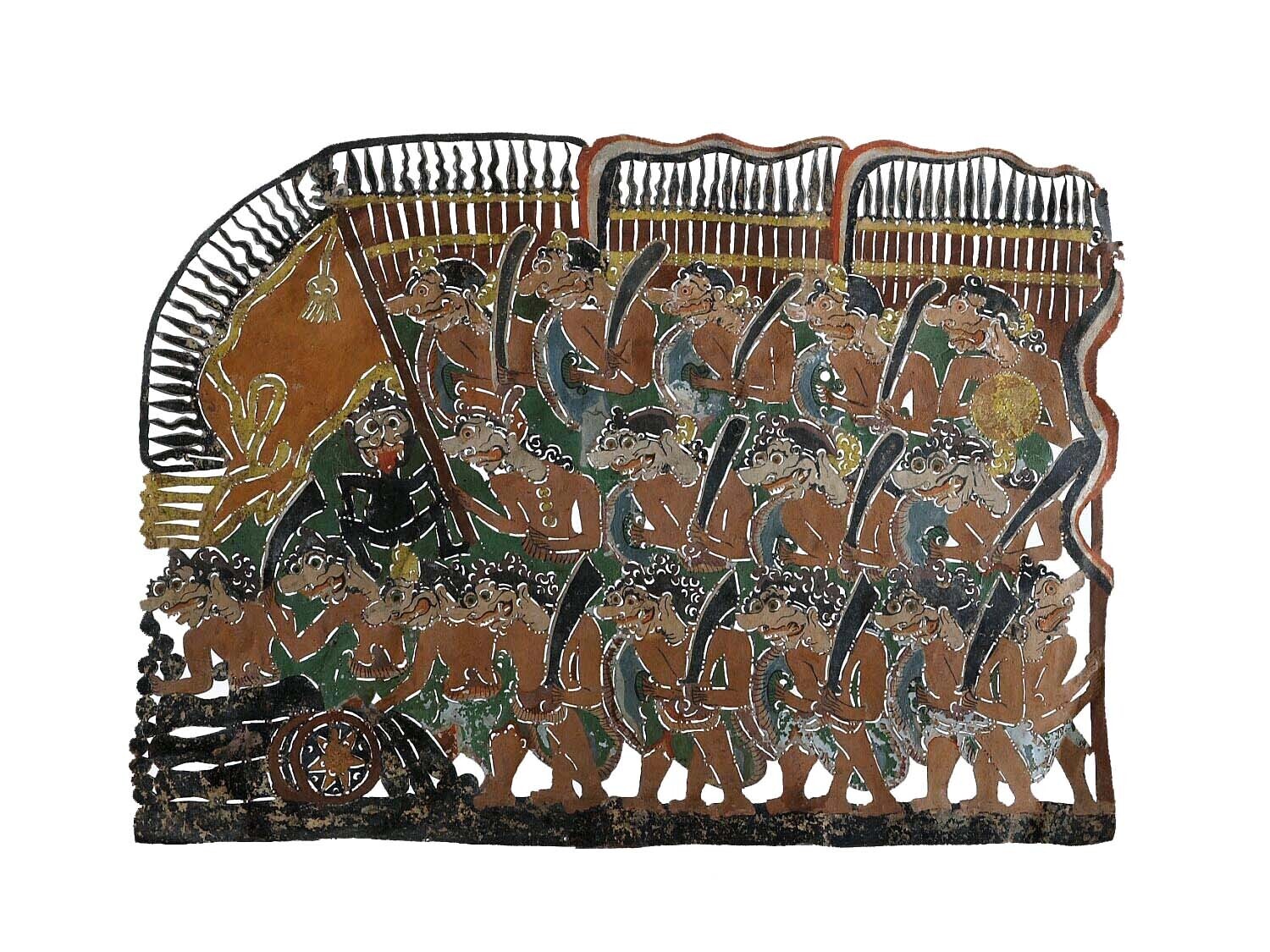 Wajangfiguur, vermoedelijk voorstellende een vlag
