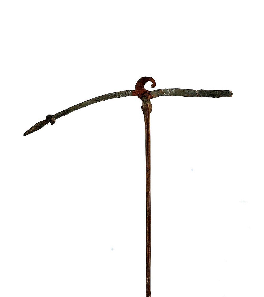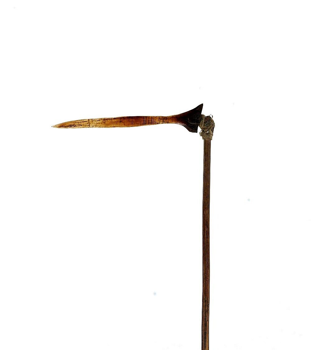 Lanspunt (a) omgevormd tot handwapen in (schede b)