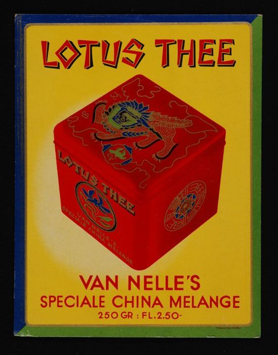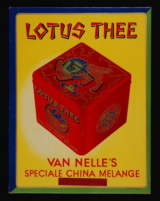 Reclamebord van Van Nelle met blik "LOTUS THEE"