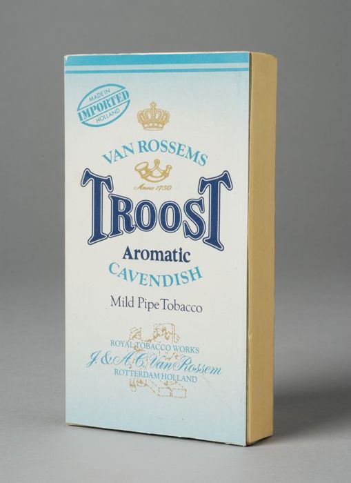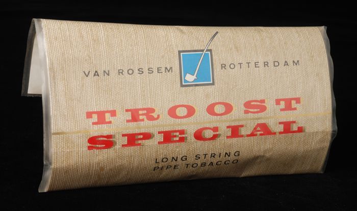 Beige pakje tabak van Van Rossem, productnaam Troost...