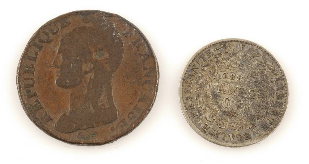 twee munten: 50 centimes en ? centimes