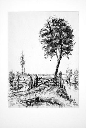 Inkttekening. De hoge boom aan de Vlaarding.