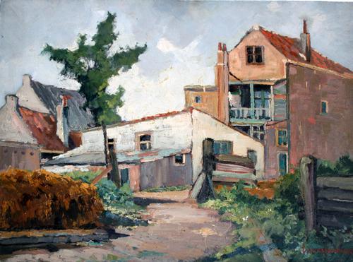 Olieverf op hardboard. Kortedijk achterzijde, Vlaard...