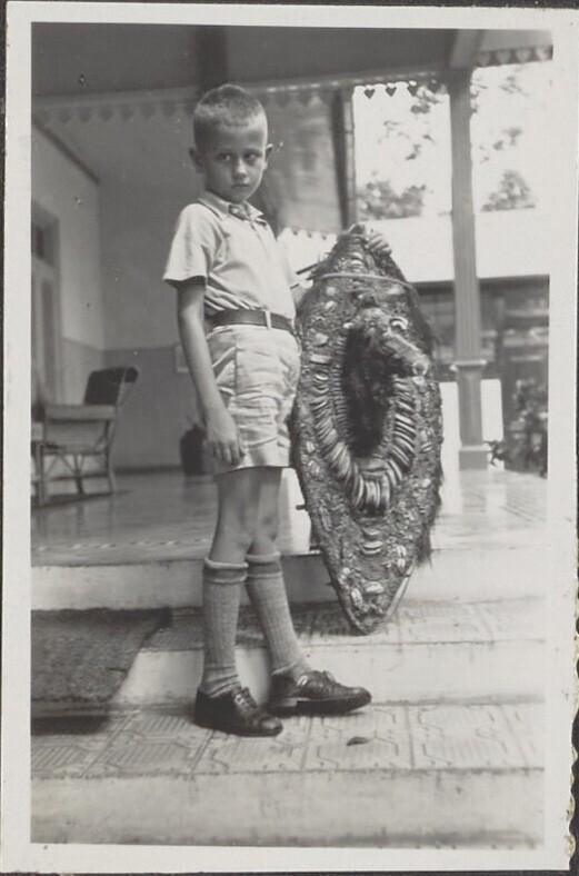 Portret van de Sundanese huisjongen Moelia met een d...