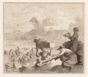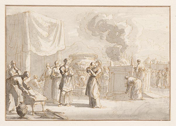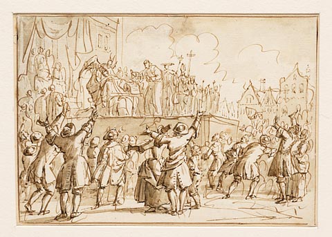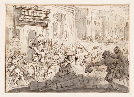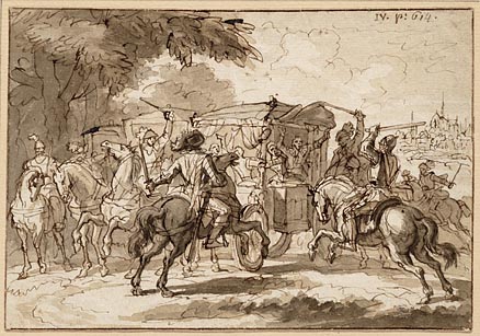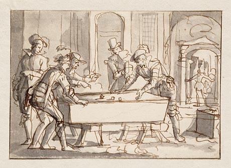 Lakeien dobbelen op de lijkkist van de hertog van Lu...