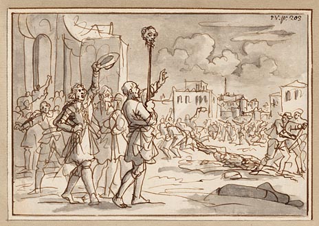 Masaniello te Napels gedood, zijn hoofd wordt op een...