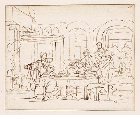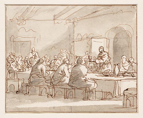 Spiridion zet zijnen gast zwijnen vleesch voor