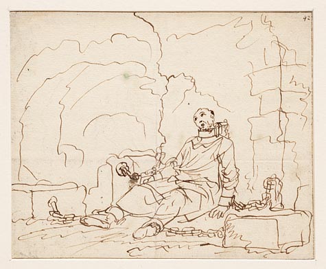 Een gevangen aan een halsijzer geslooten, en aan han...