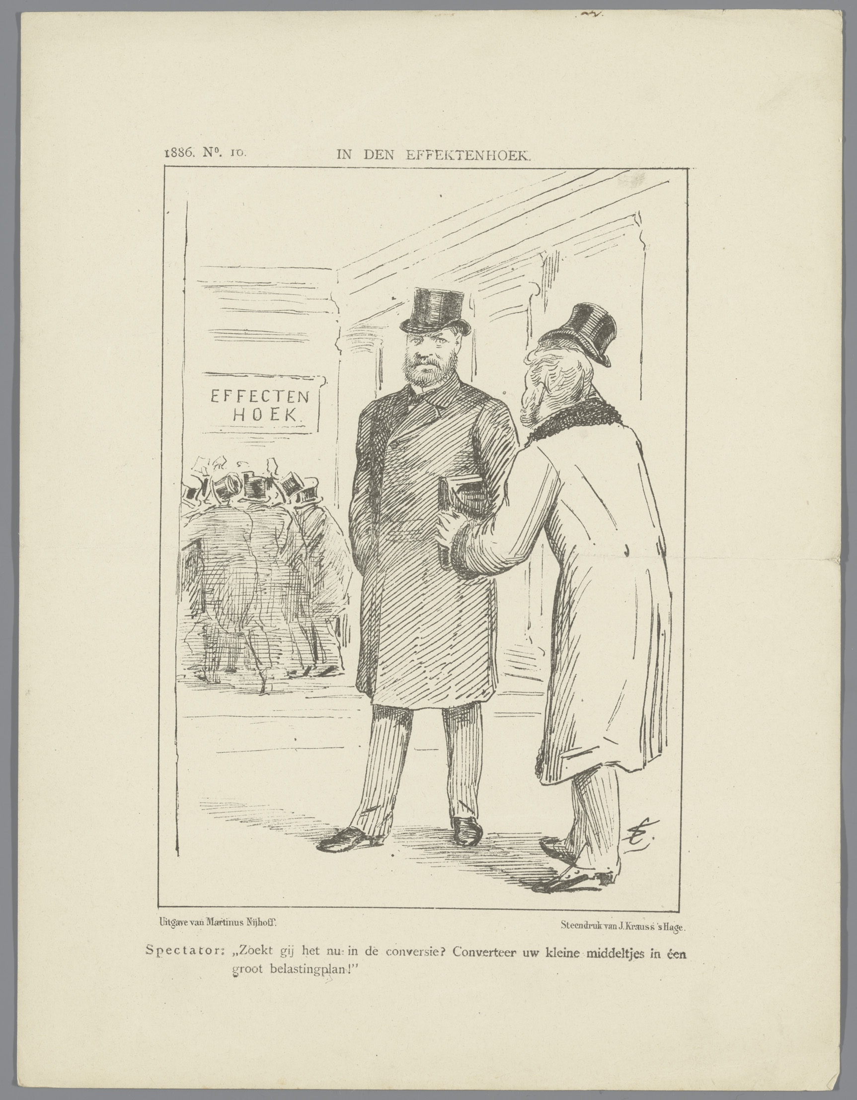 Politieke spotprent over financiën, 1886