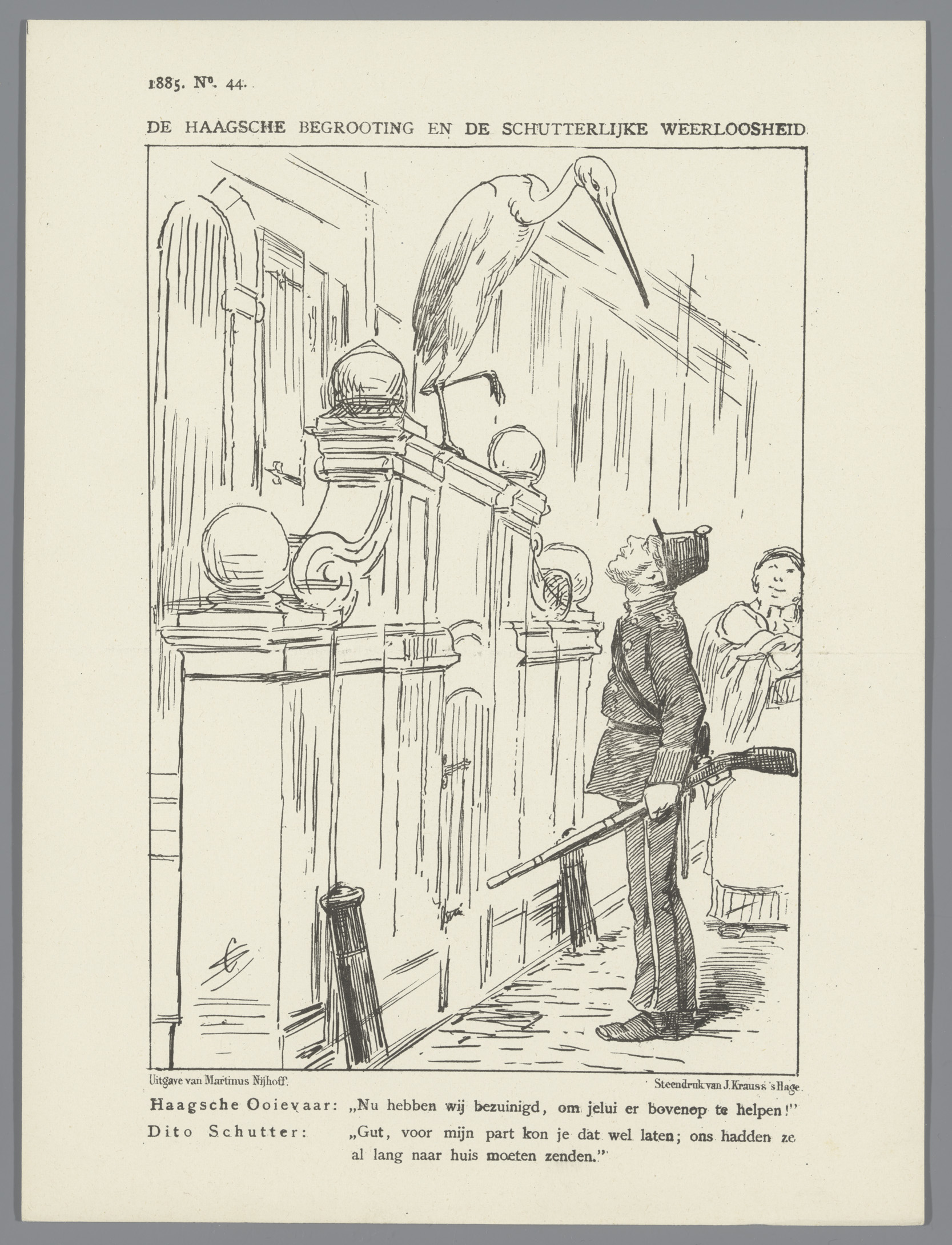 Spotprent met een ooievaar, 1886