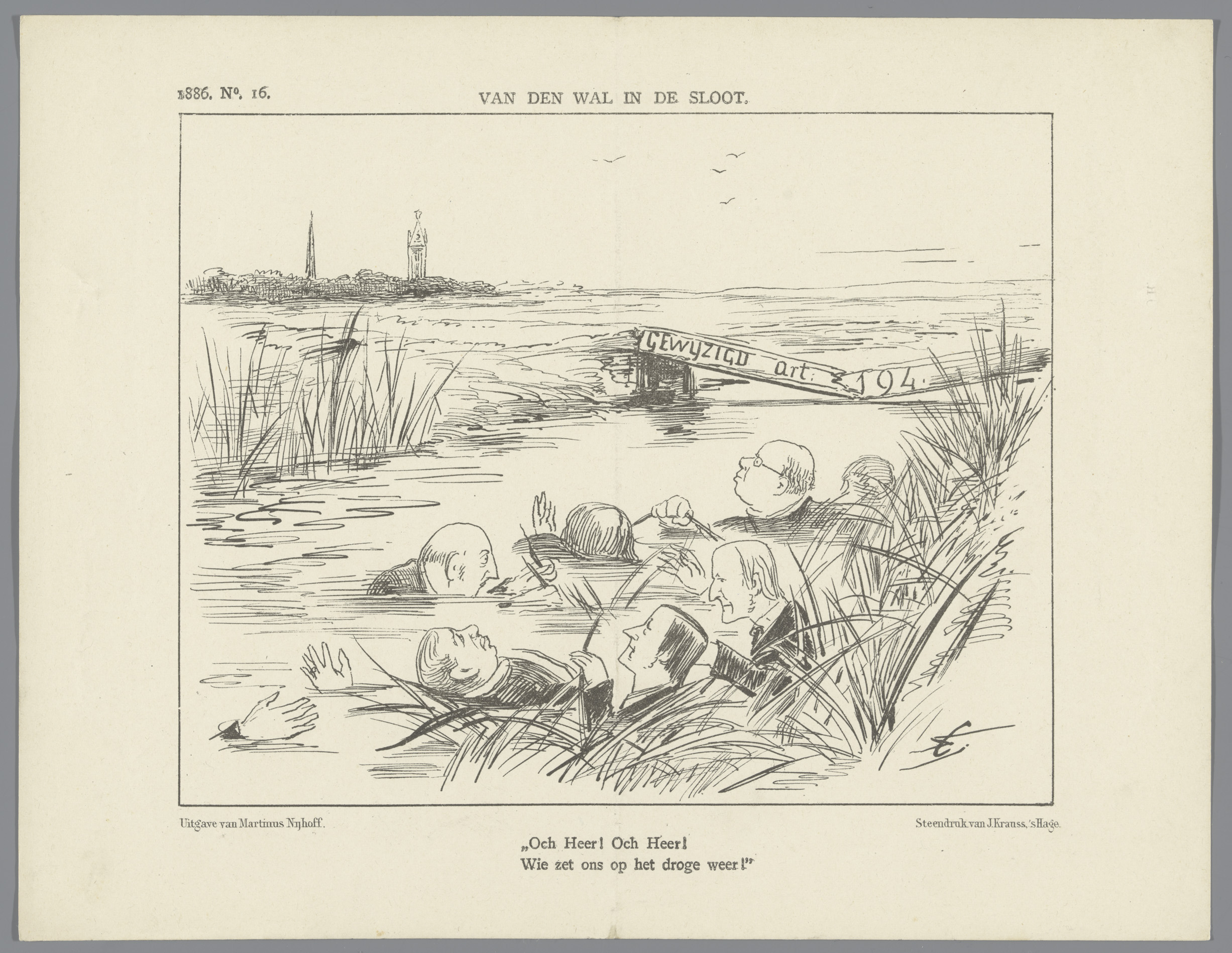 Politieke spotprent over artikel 194, 1886