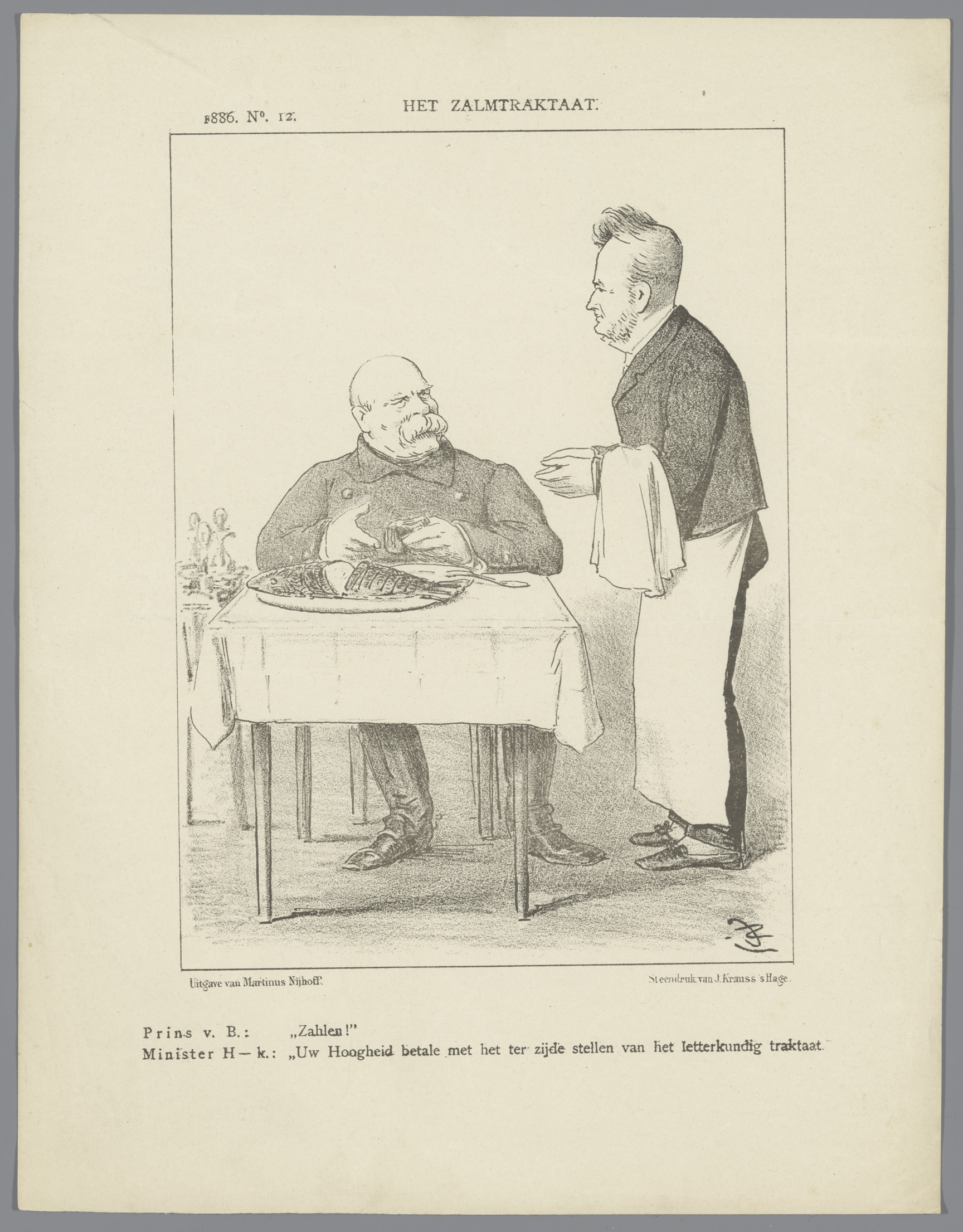 Spotprent met minister Heemskerk, 1886
