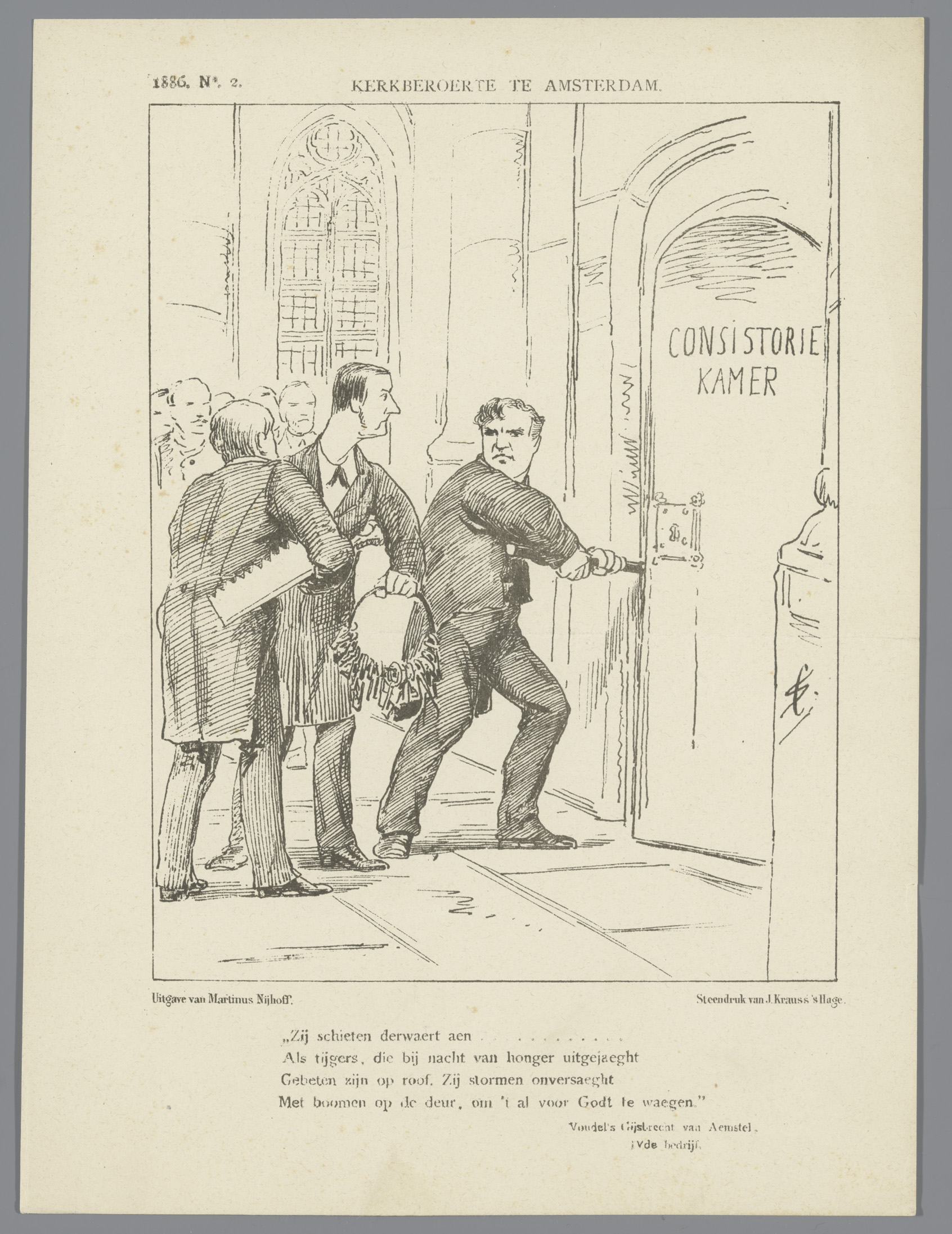 Spotprent over een kerkelijk conflict, 1886