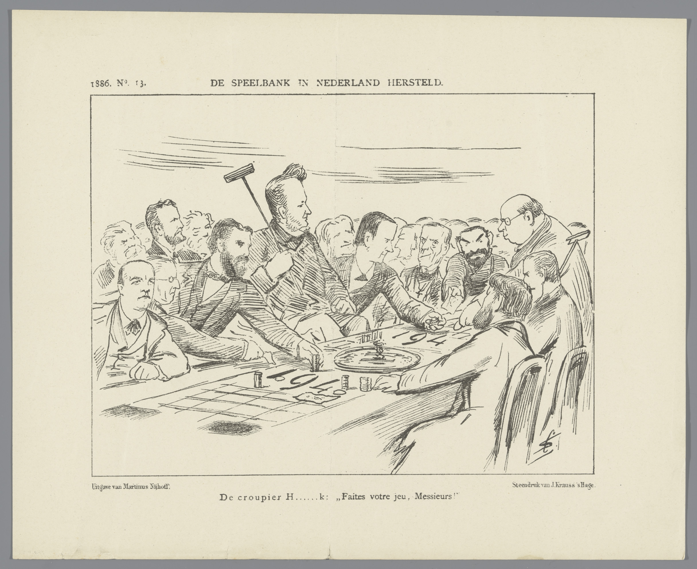 Spotprent met Heemskerk als croupier, 1886