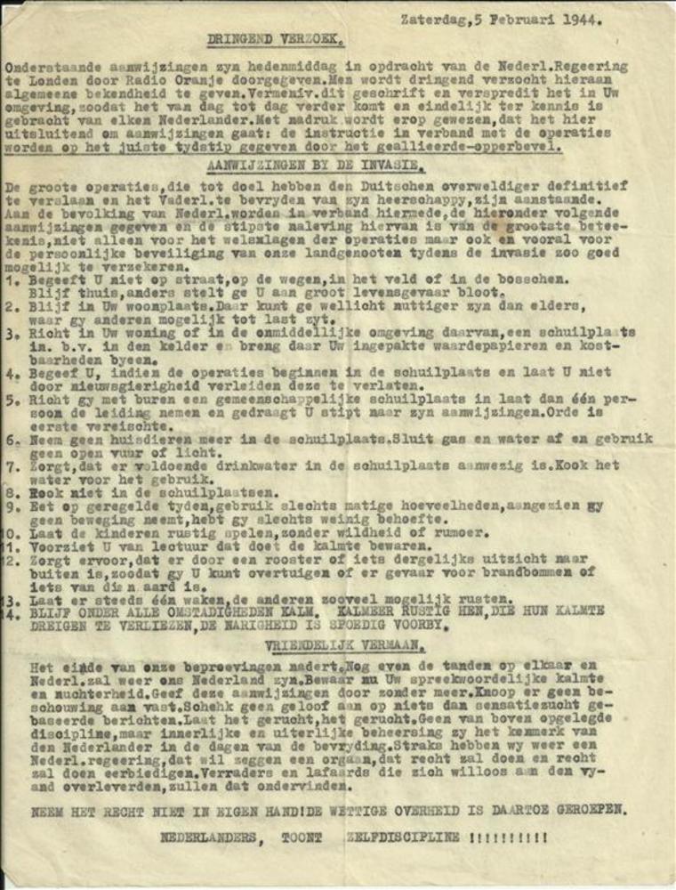Dringend verzoek zaterdag 5 februari 1944
