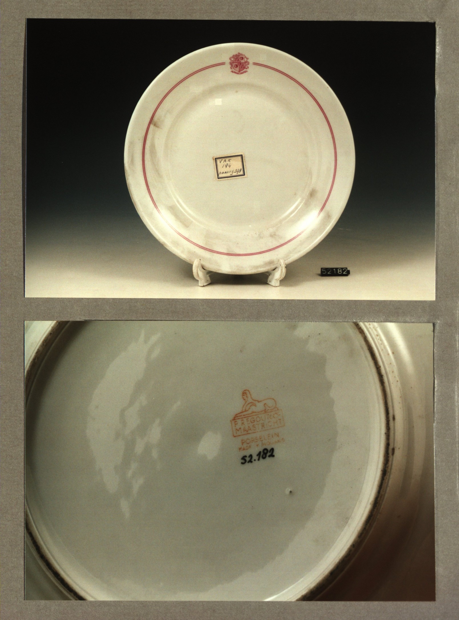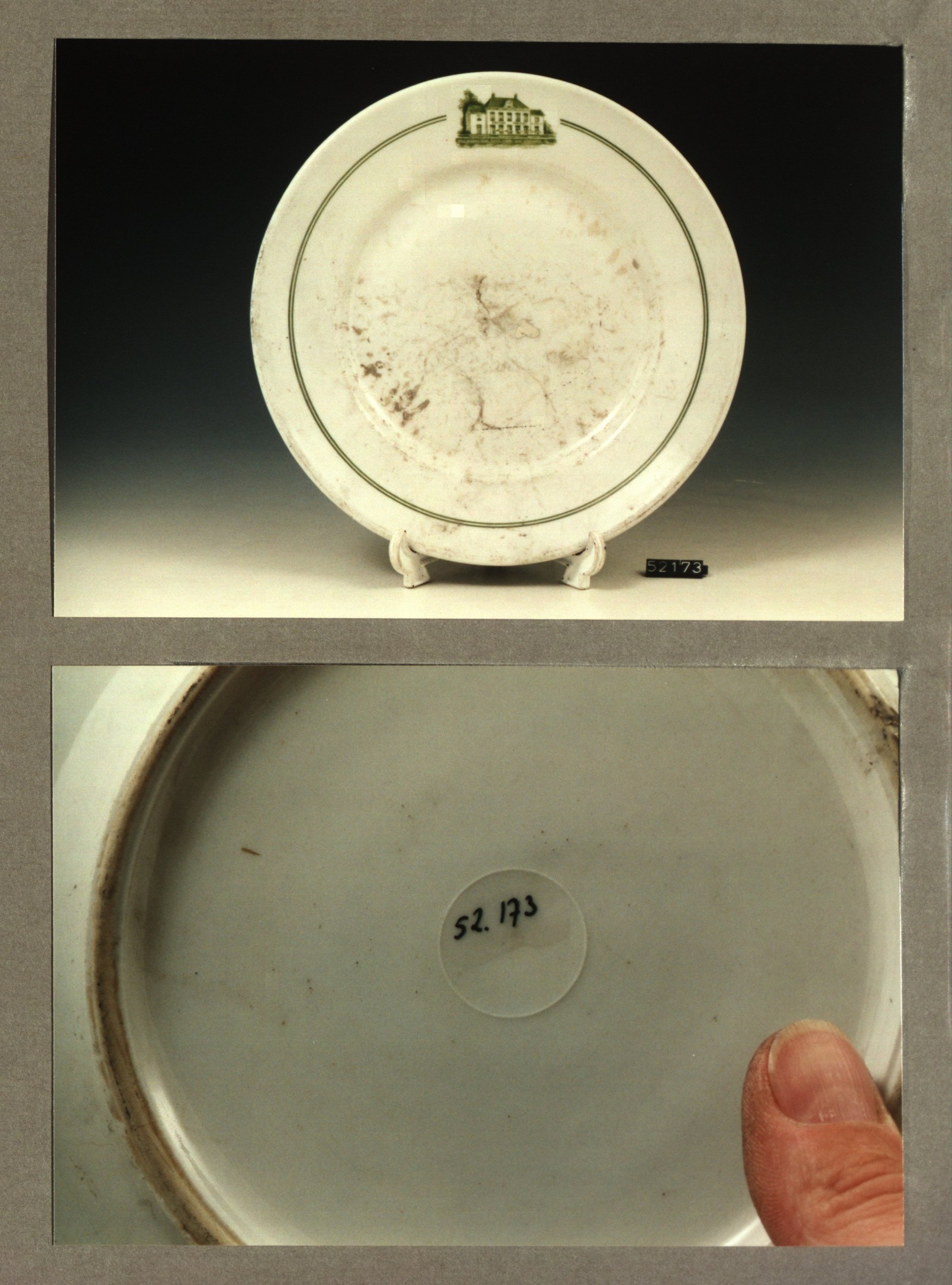 Plat bord, model P met decor Algemeen ziekenhuis Zeist