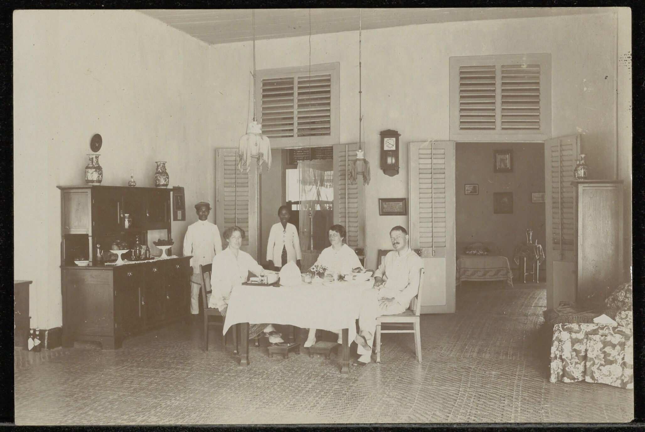 Groepsportret aan tafel op de achtergalerij van het ...