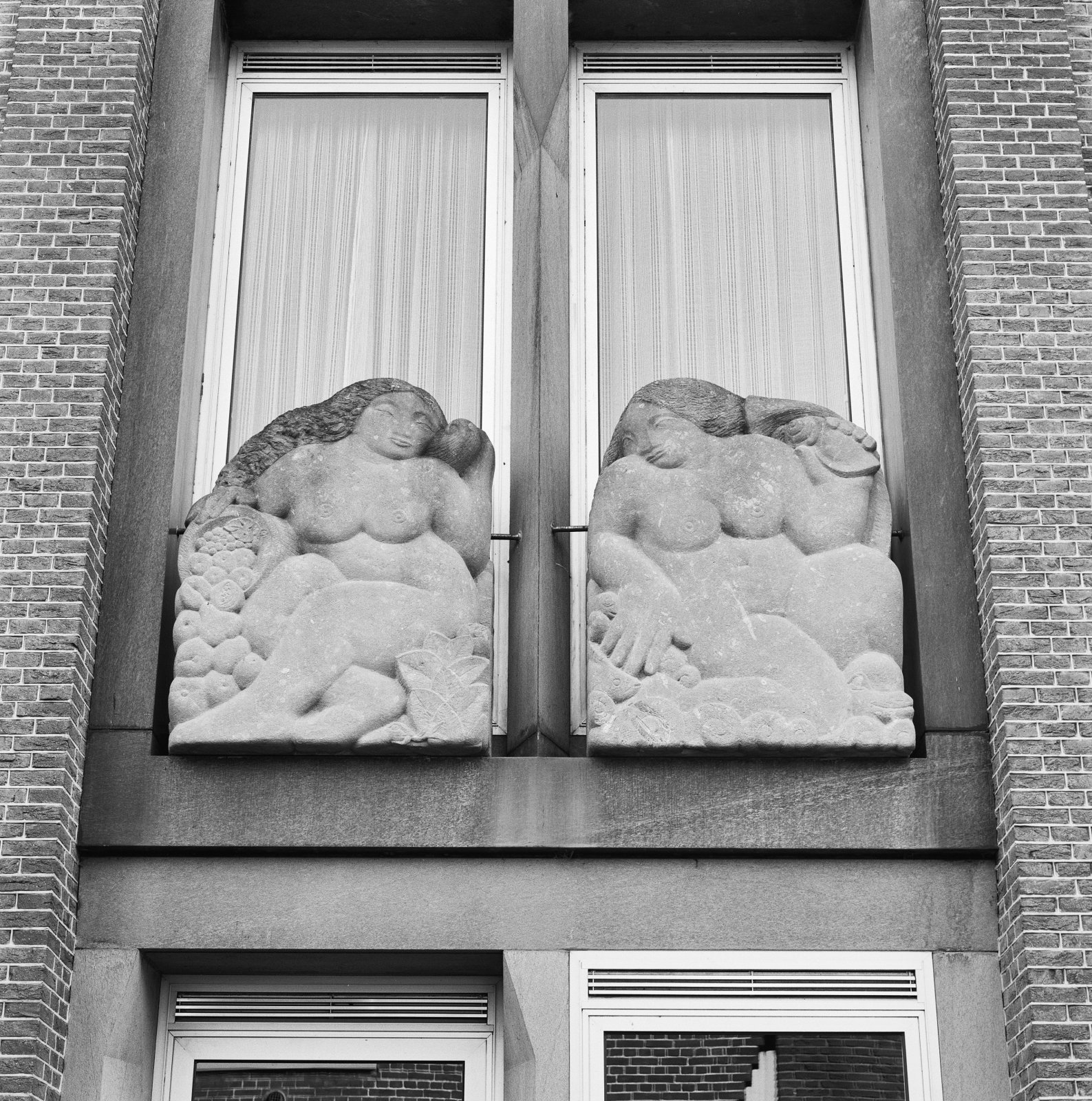 Beeld 'Land en Water' (twee hoogreliƫfs met vrouwenf...