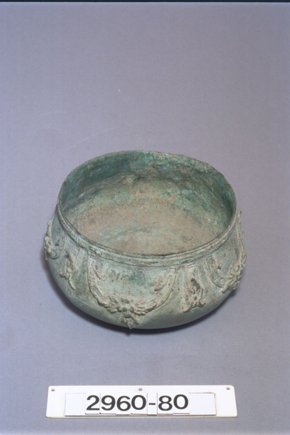 Indo-Javaans wijwaterbakjemet guirlandeversiering brons