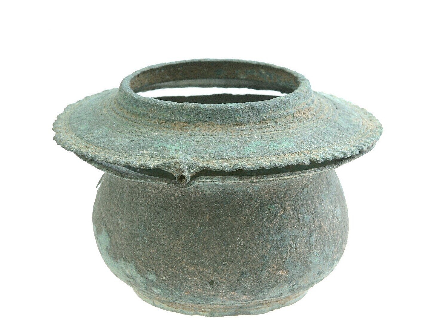Indo-Javaanse grote bronzen kookpot met twee oortjes